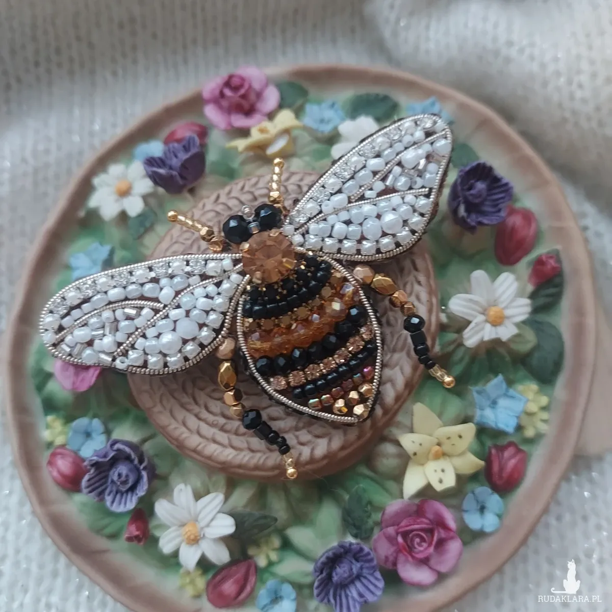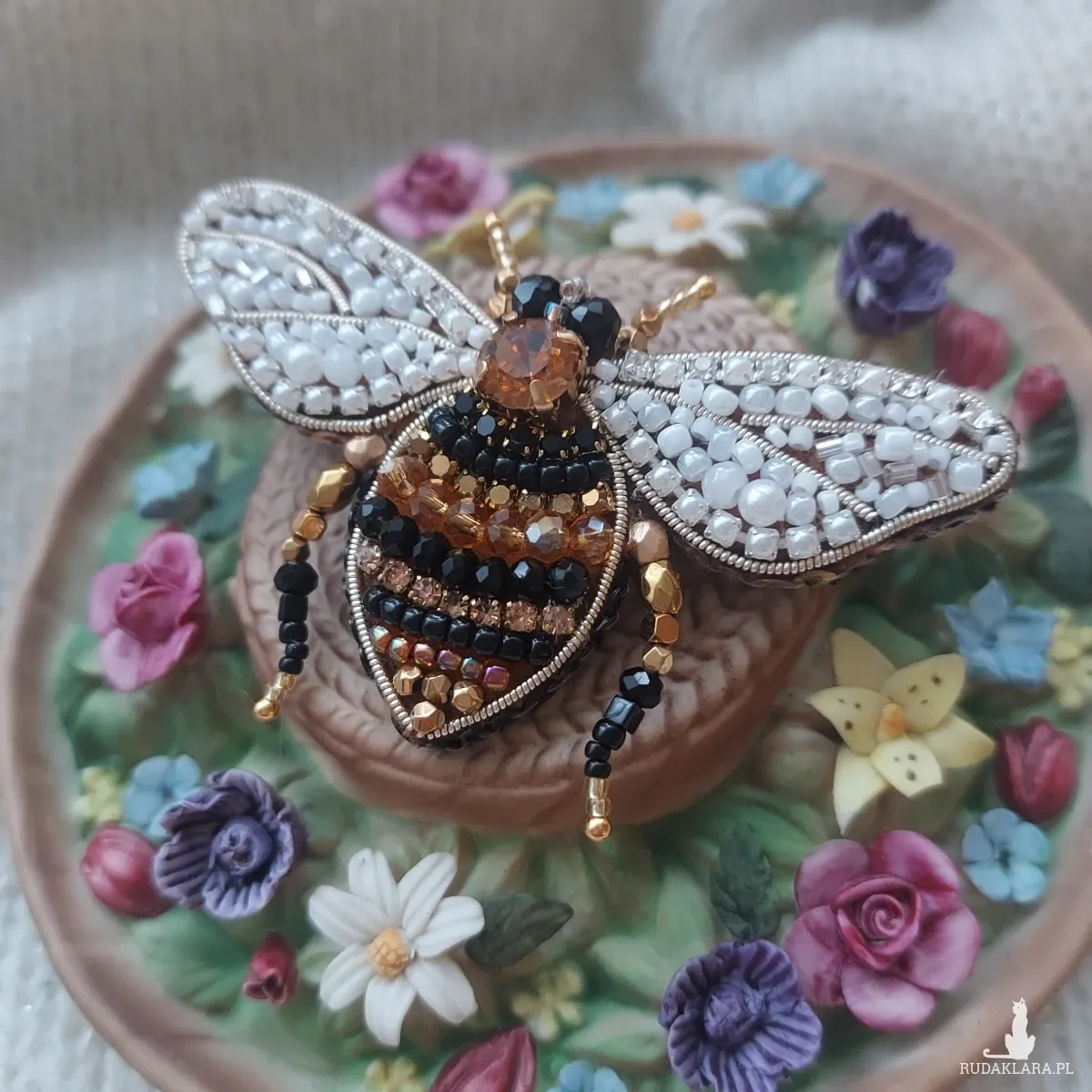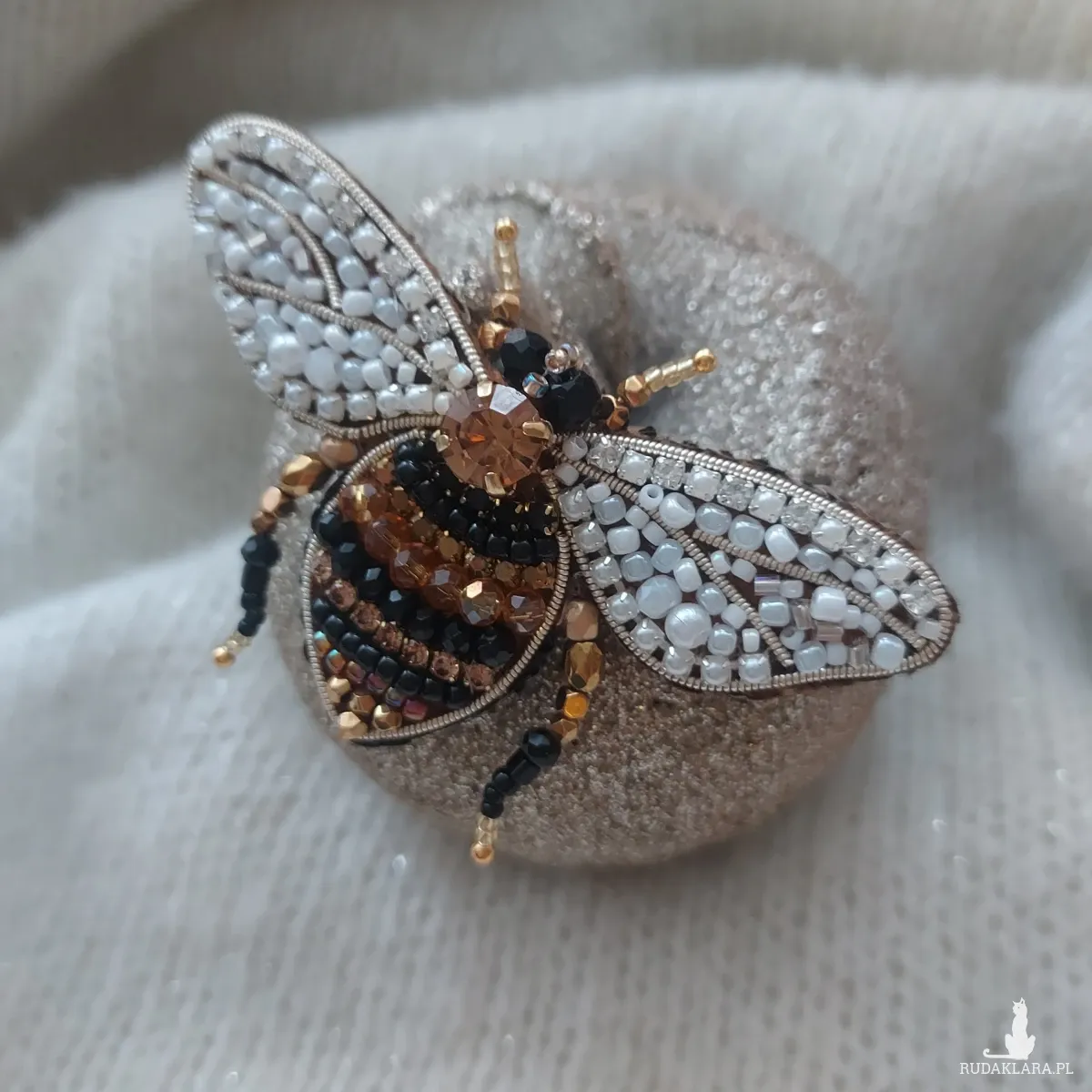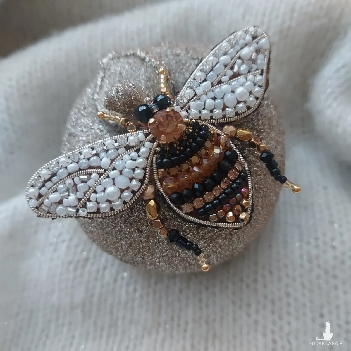 Perłowo-złoto-brązowa broszka pszczoła to idealny dodatek biżuteryjny dla osób ceniących nie tylko estetykę, ale także otaczającą nas przyrodę.
