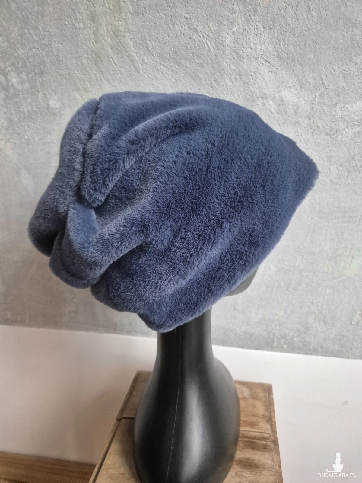 Czapka futrzana niebieska ociepła na podszewce, prezentuje się niezwykle oryginalnie nie dla szarej myszki dla odważnych pewnych siebie kobitek polecam pojedyncza sztuka box a1