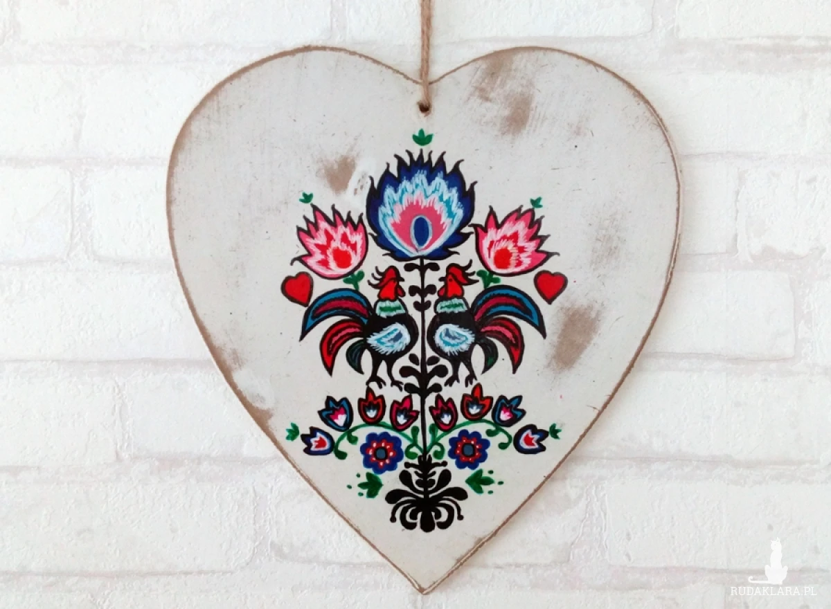 Serce ręcznie malowane koguty łowickie