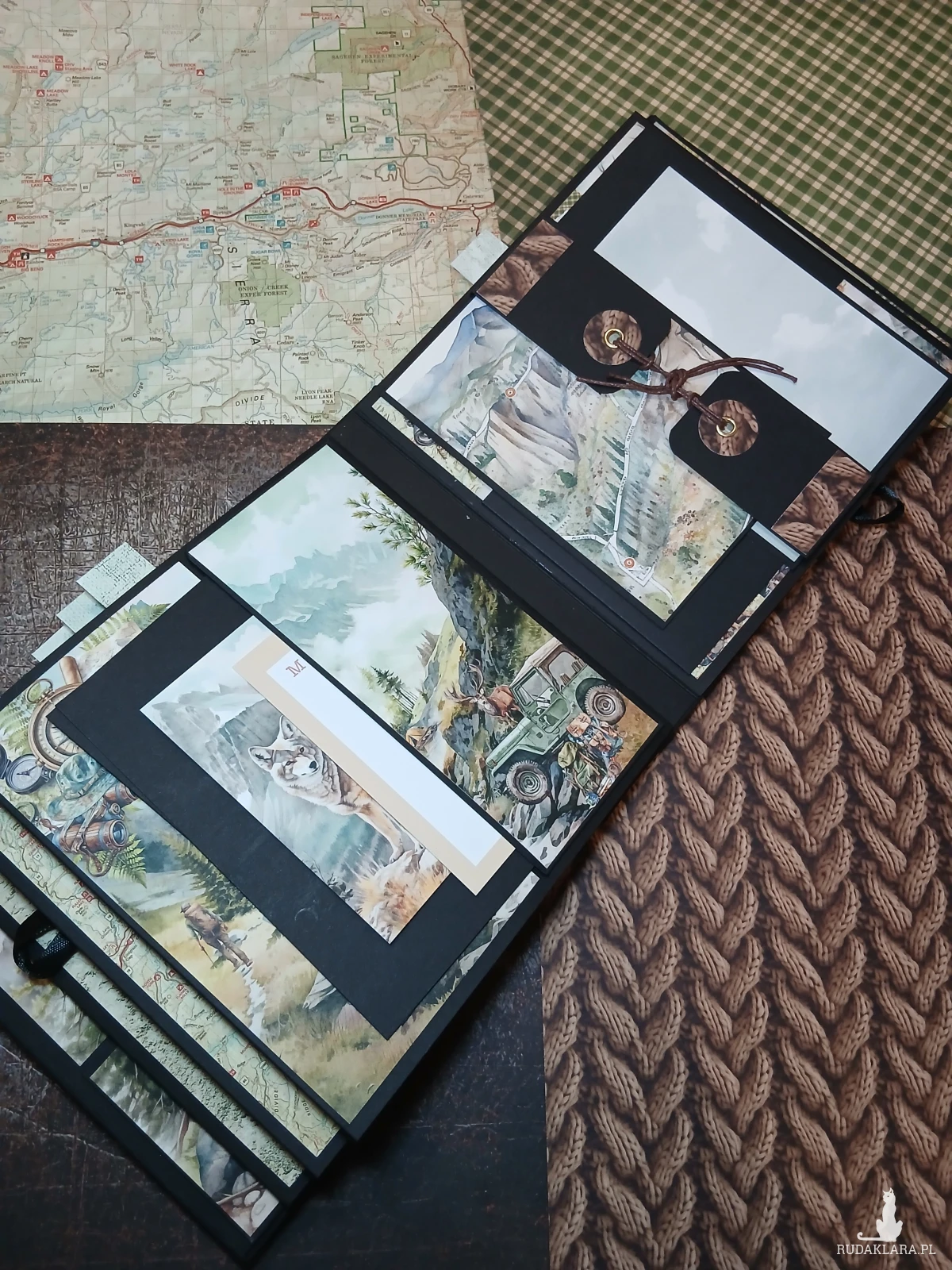 Album na zdjęcia o wym. 16x16 cm, obity czarnym płótnem, zamknięty sznurkiem z zawieszka. Album na 41 zdjęć o wym.9x13cm, maksymalnie na 46 zdjęć (są dodatkowe powierzchnie). W środku kieszenie, klapki, maty, belly band, wodospady, harmonijki. Ozdobne zapięcia i elementu 3d. Papiery od najlepszych producentów. Film z prezentacją albumu pod linkiem: https://youtu.be/21Dr-Pt-0b4?si=jH4I2LMya6mM5Va1