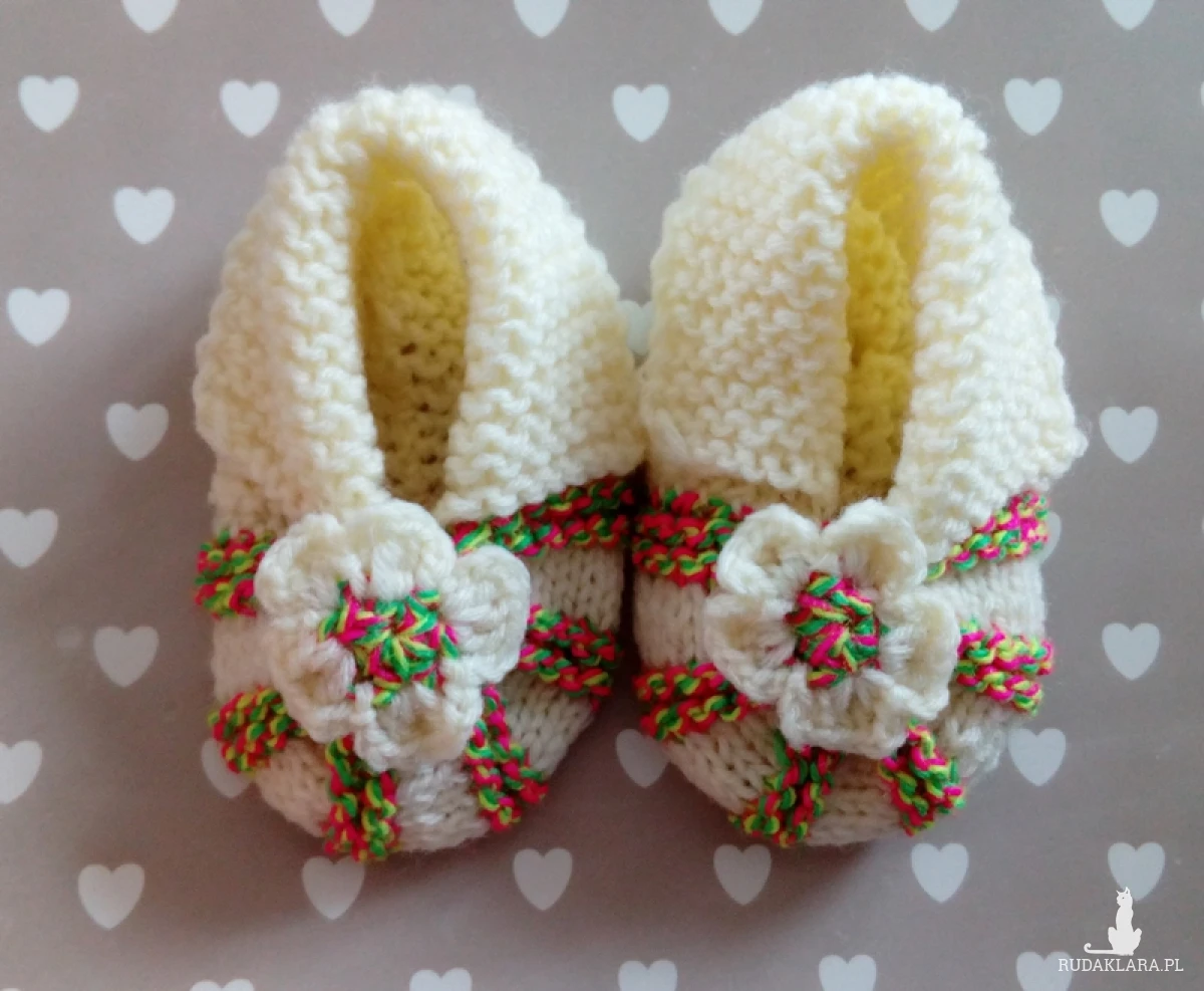 Ręcznie robione buciki niemowlęce w stylu vintage.