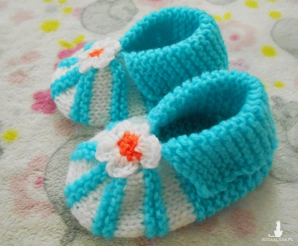 Kapcie robione na drutach bamboszki błękitne
