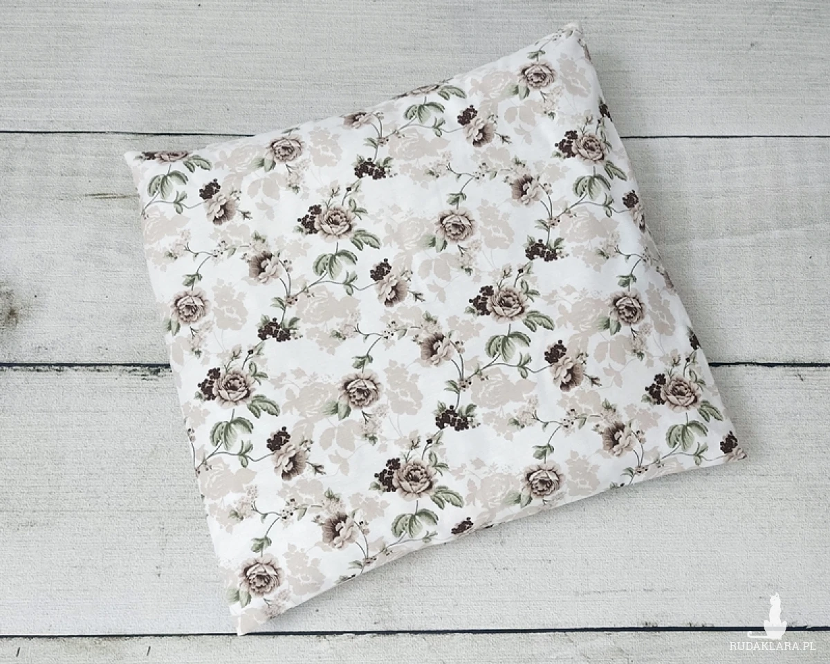 Poduszka została uszyta z bawełny i napełniana łuską prosa. Poszewka z