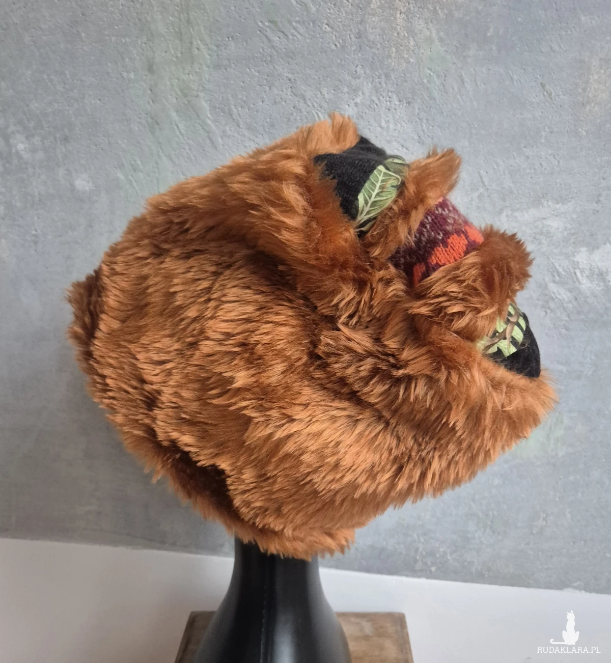 Futrzana czapka ruda   gora folkowa na podszewce rozmiar uniwersalny Box a1