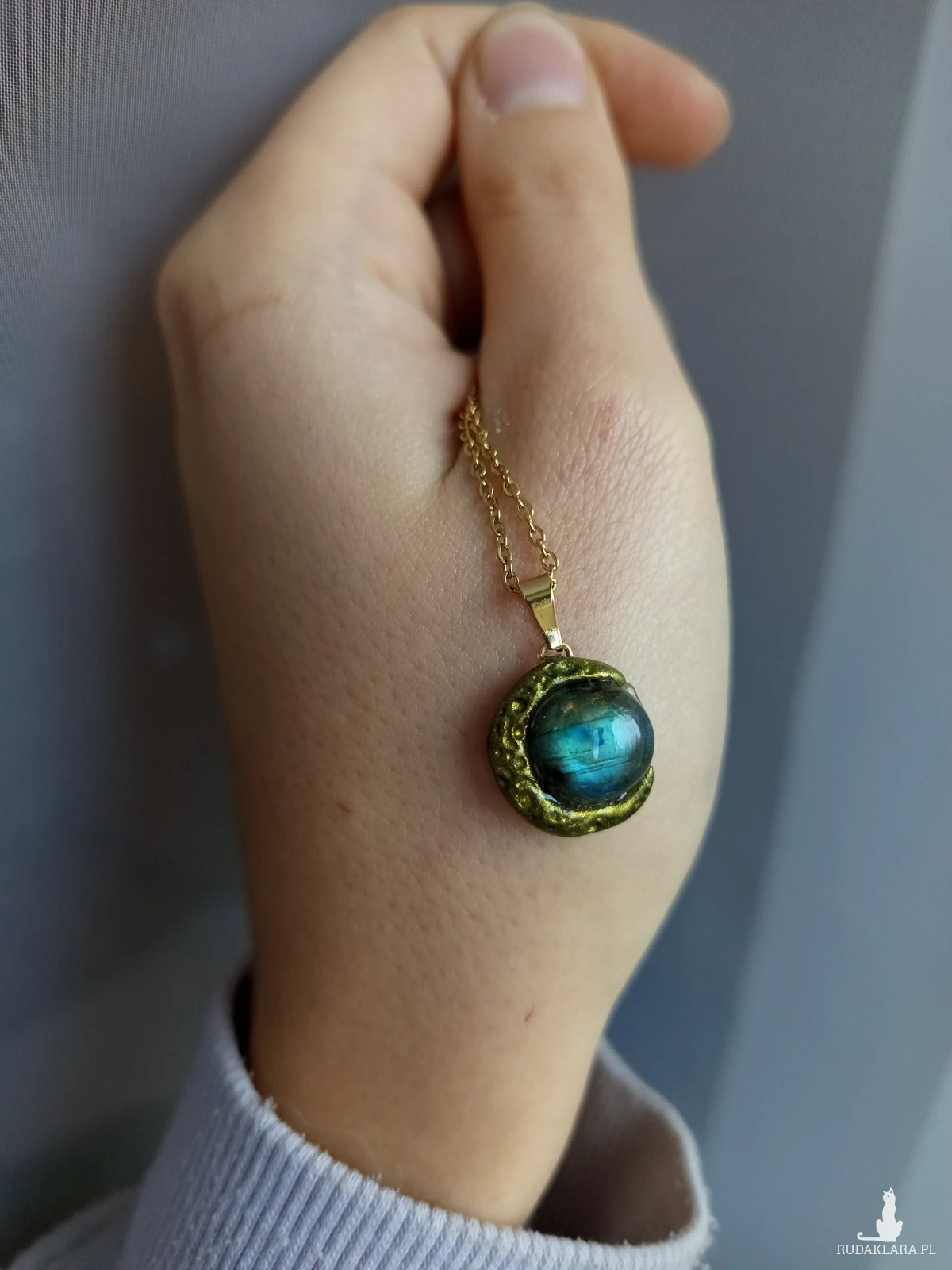 Naszyjnik księżyc z labradorytem. Idealny na prezent, Magic, fantasy, goblincore, drgon, Fairycore