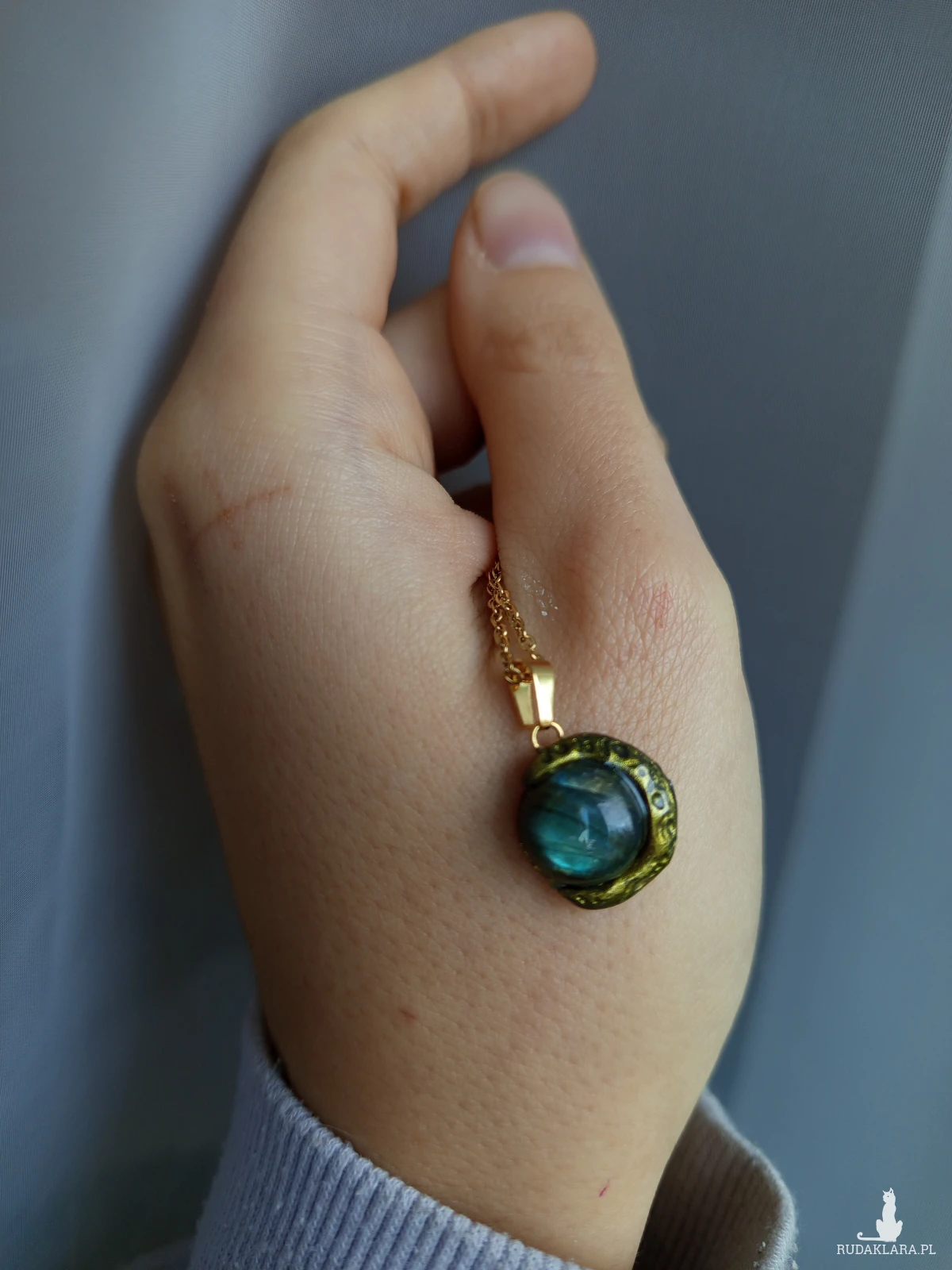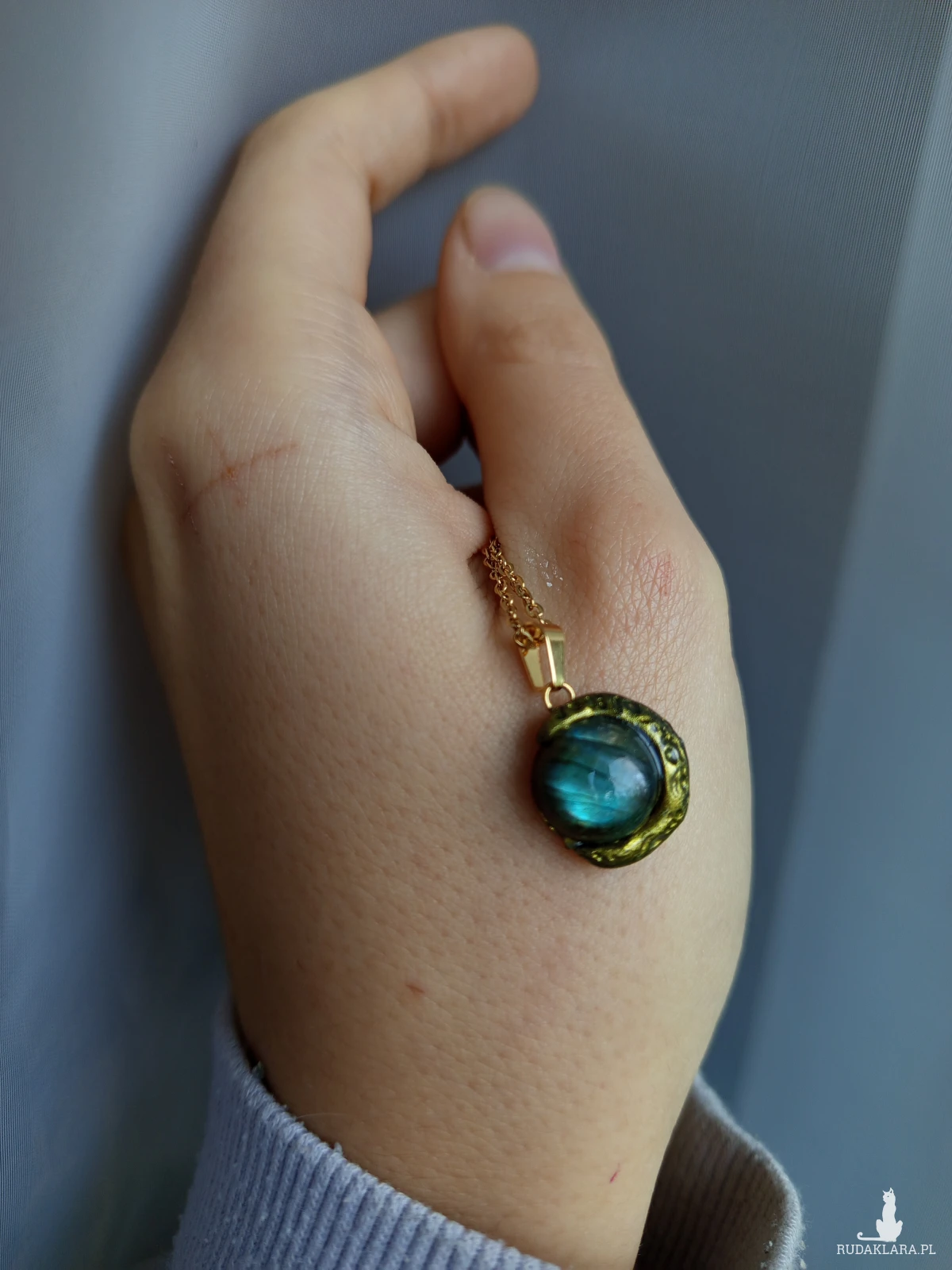 🌙✨ Naszyjnik Złoty Księżyc z labradorytem ✨🌙
