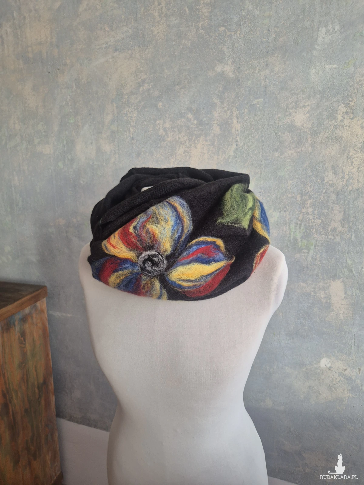 Super prezent na dzień mamy czarny ostatnie bez powtórek filcowany wełniany miły i ciepły komin handmade, owijany dwa razy, filcowany wełną merynosów, bardzo ciepły i miły, doskonały na prezent, fantastyczny na codzienne noszenie, zwraca uwagę, dodaje koloru, nie zginiesz w tym kominie na ulicy, pojedyncze egzemplarze, polecam bestseller,box 01