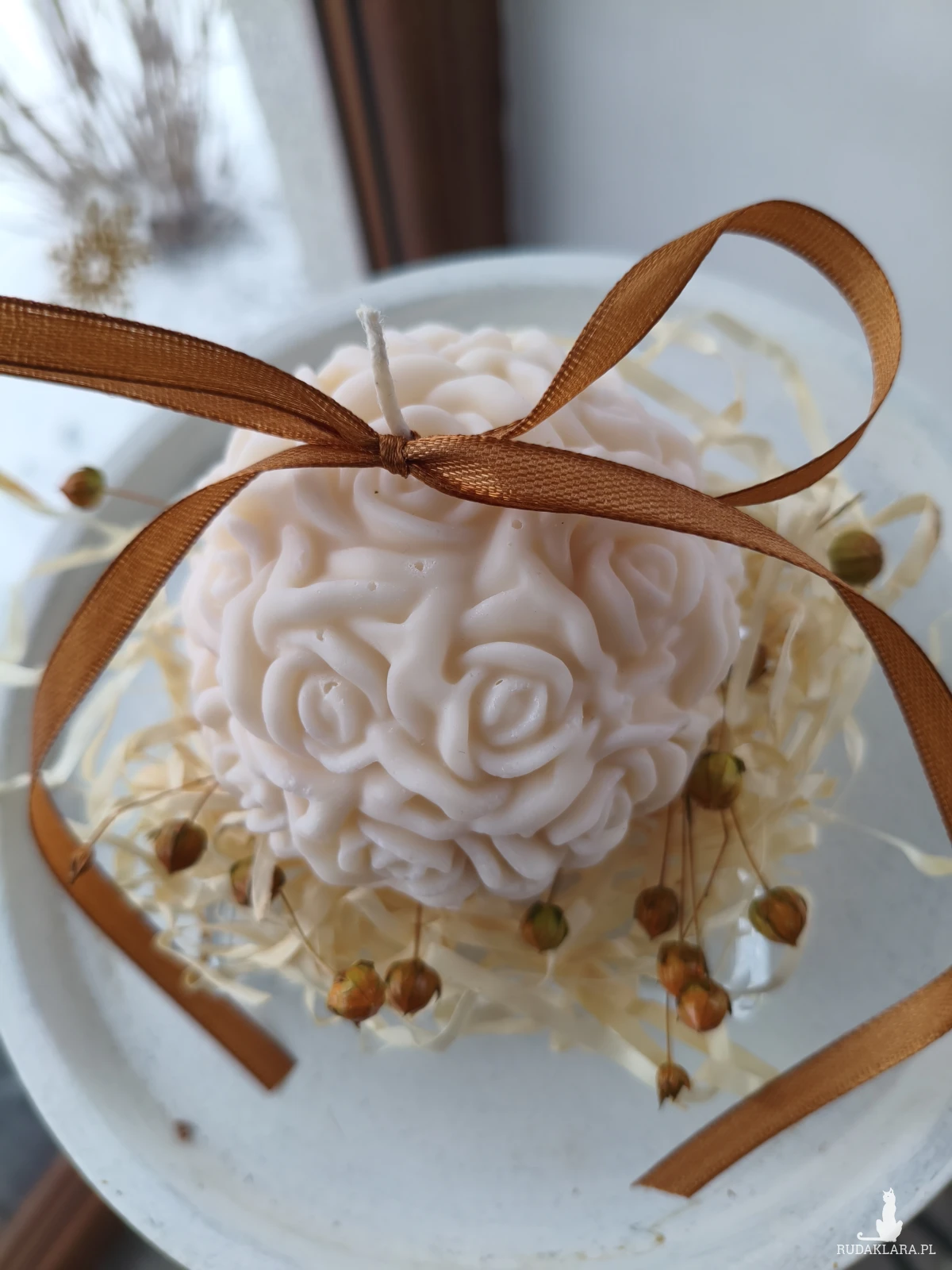 Świeca została dekoracyjnie zapakowana zostały starannie dobrane suszone kwiaty i inne dodatki. Idealna na urodziny, rocznice, ślub, walentynki, dzień kobiet, chrzest, komunię czy jako podziękowanie, łączy piękno natury z delikatnym aromatem, tworząc niezapomniane wrażenia.