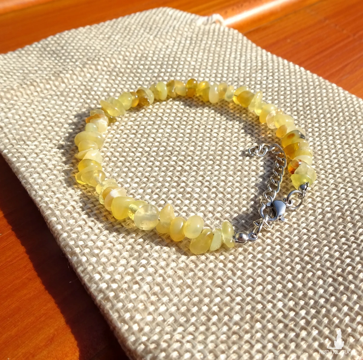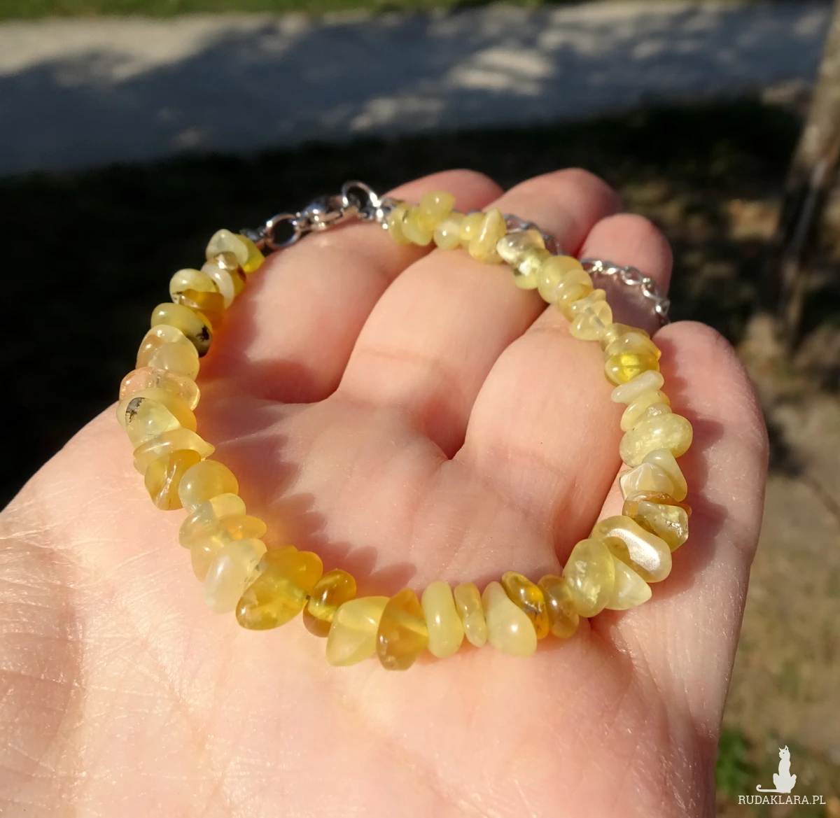 Bransoletka z sieczki z żółtych opali wielkości 5-8mm i elementów ze stali szlachetnej