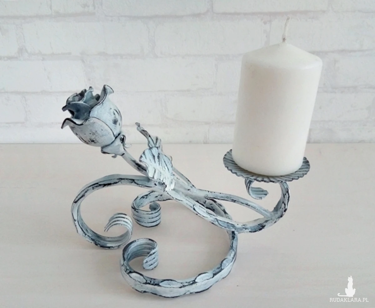materiałów jak drewno jak i metal. Świecznik wykonany w technice metaloplastyki