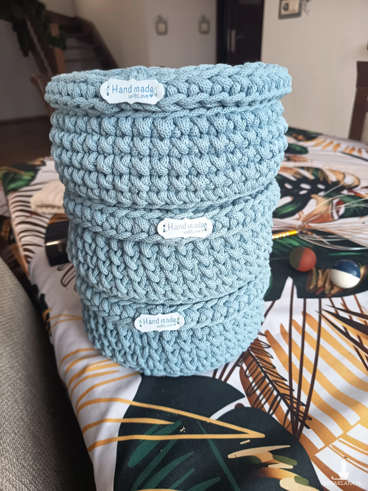 Szydełkowanie stało się moją pasją od jakiegoś czasu. Nie dawno zachorowałam na nowotwór i mając dużo wolnego czasu zaczęłam szydełkować, jest to dla mnie odskocznia od codzienności. Najbardziej lubię pracować z sznurkiem , ale próbuje też swoich sił w robieniu chust i torebek. Obecnie w swojej ofercie mam koszyczki, szkatułki, chusteczniki, podkladki pod talerze i kubki.