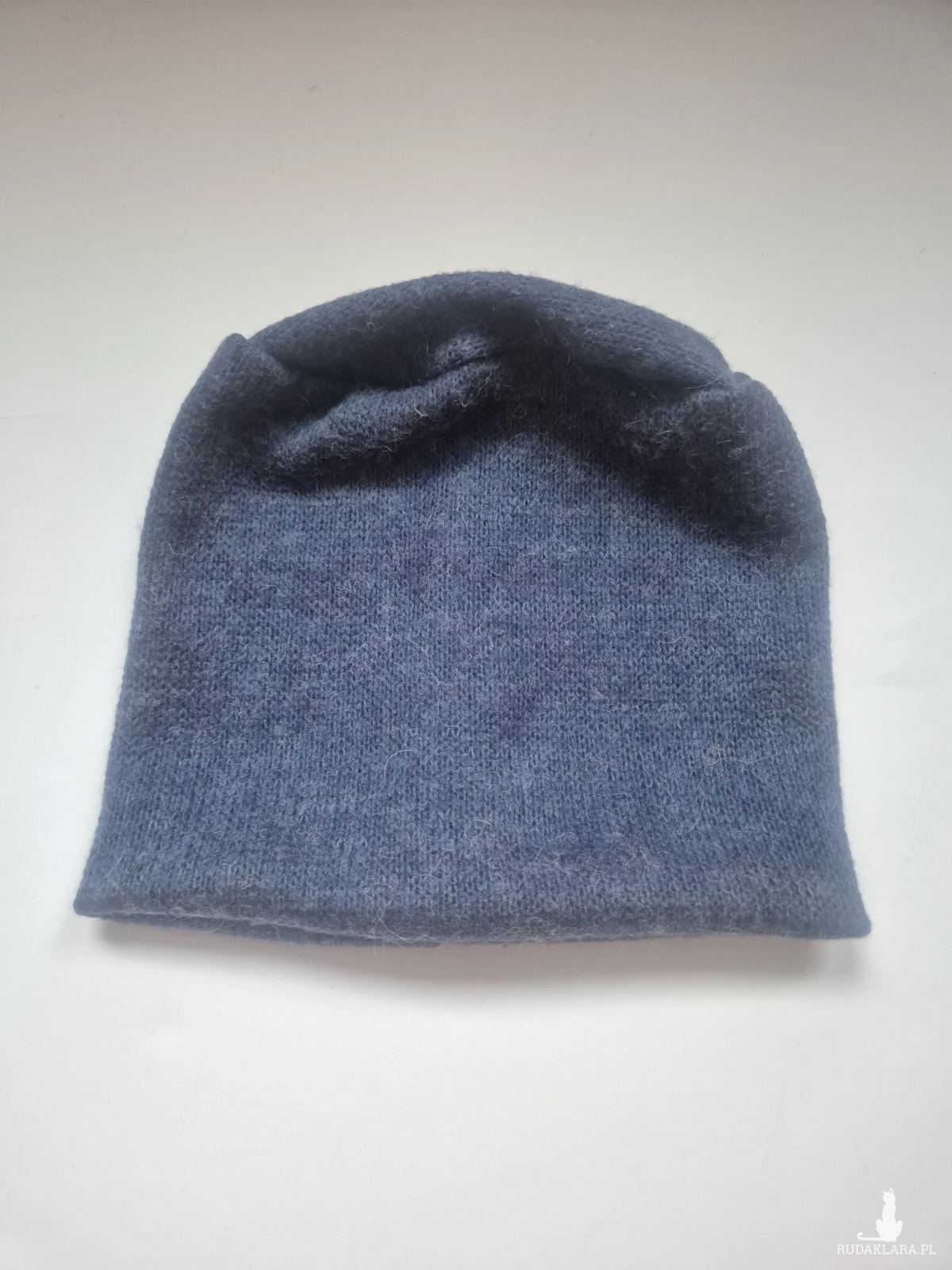 Ciepła czapka niebieska wełniana unisex na podszewce rękodzieło rozmiar uniwersalny Smerfetka polecam box a1