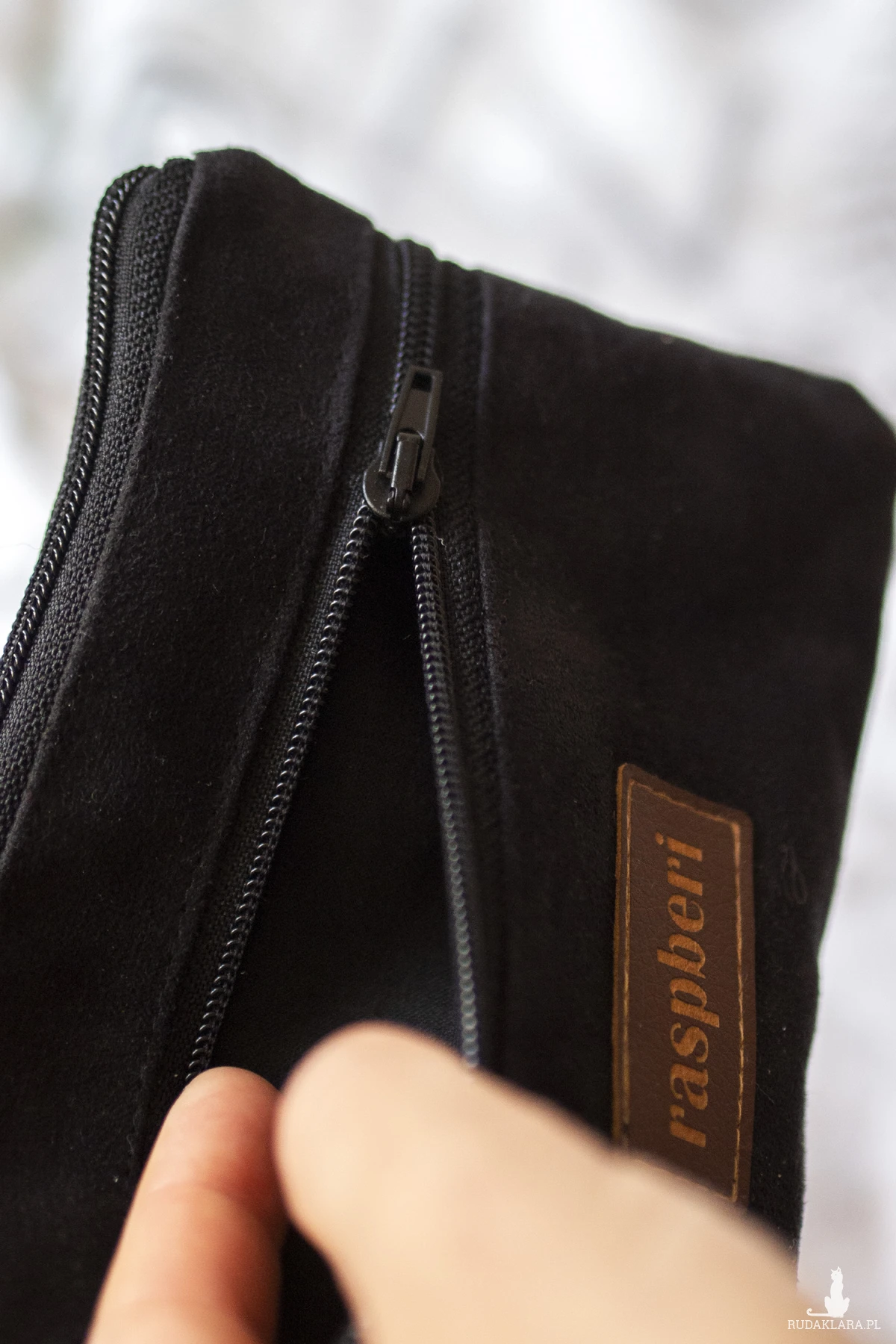 Prosty wodoodporny portfel wykonany z czarnego nubuku.