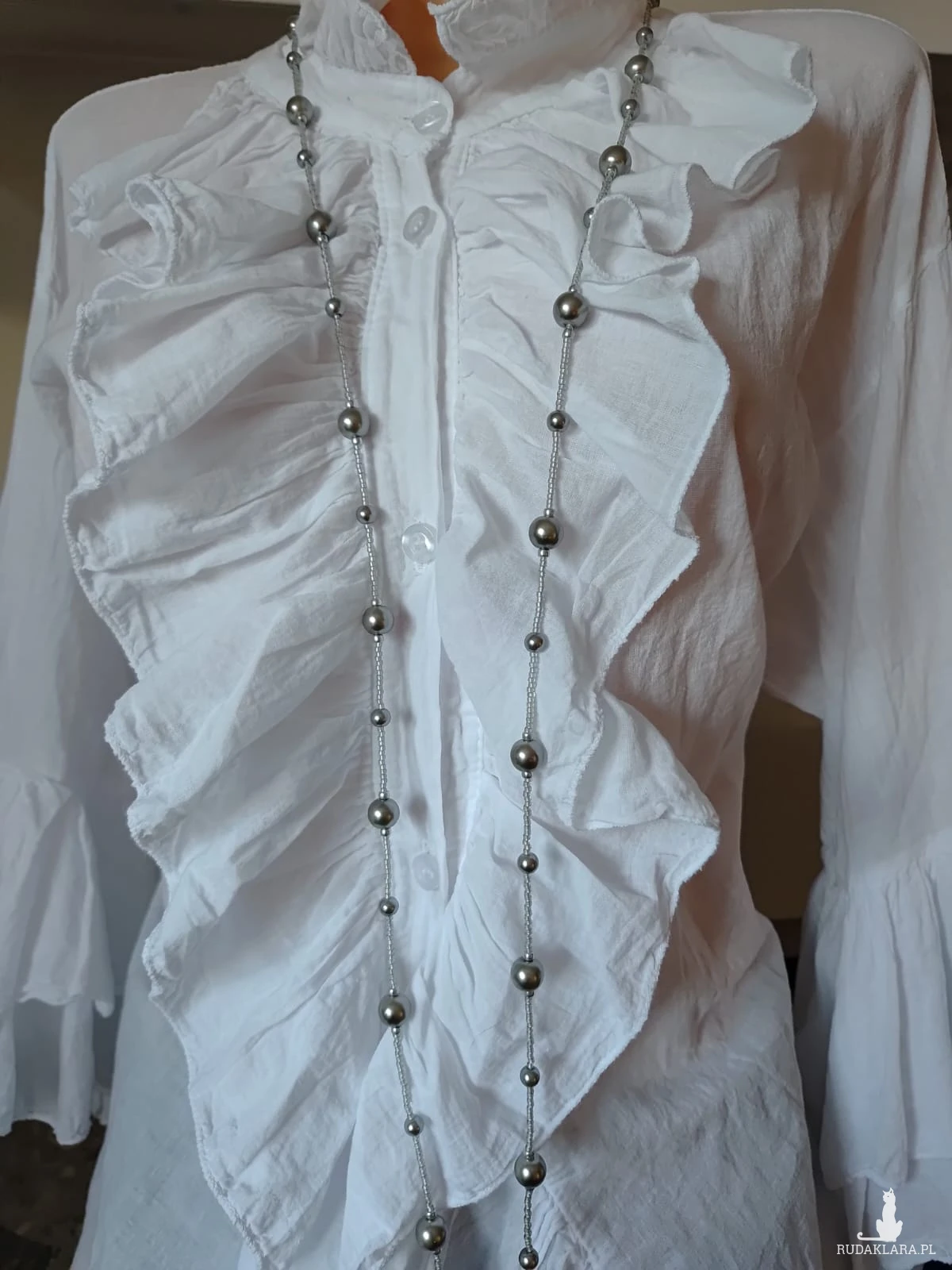 Biżuteria jest elementem dekoracyjnym stroju i należy użytkować ją zgodnie z przeznaczeniem. Elementy metalowe, sznurki syntetyczne mogą zawierać alergeny i uczulać. Sznurki, nici to elementy łatwopalne. Korale szklane , metalowe drobne elementy chronić przed małymi dziećmi.