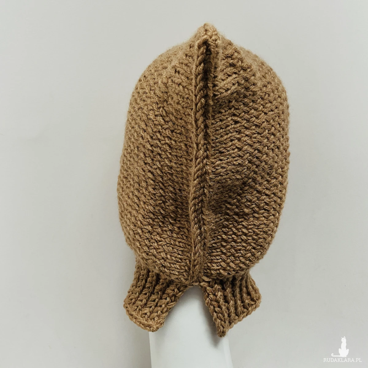 Kaptur wykonałam ręcznie na drutach z miękkiej, ciepłej i przyjemnej w dotyku włóczki - mieszanki 49% wełny merino i 51% akrylu. Połączenie tych włókien sprawia, że kaptur jest jednocześnie lekki, oddychający i elastyczny, a przy tym dobrze chroni przed chłodem. Delikatna struktura dzianiny dopasowuje się do kształtu głowy, zapewniając komfort noszenia bez uczucia ucisku.