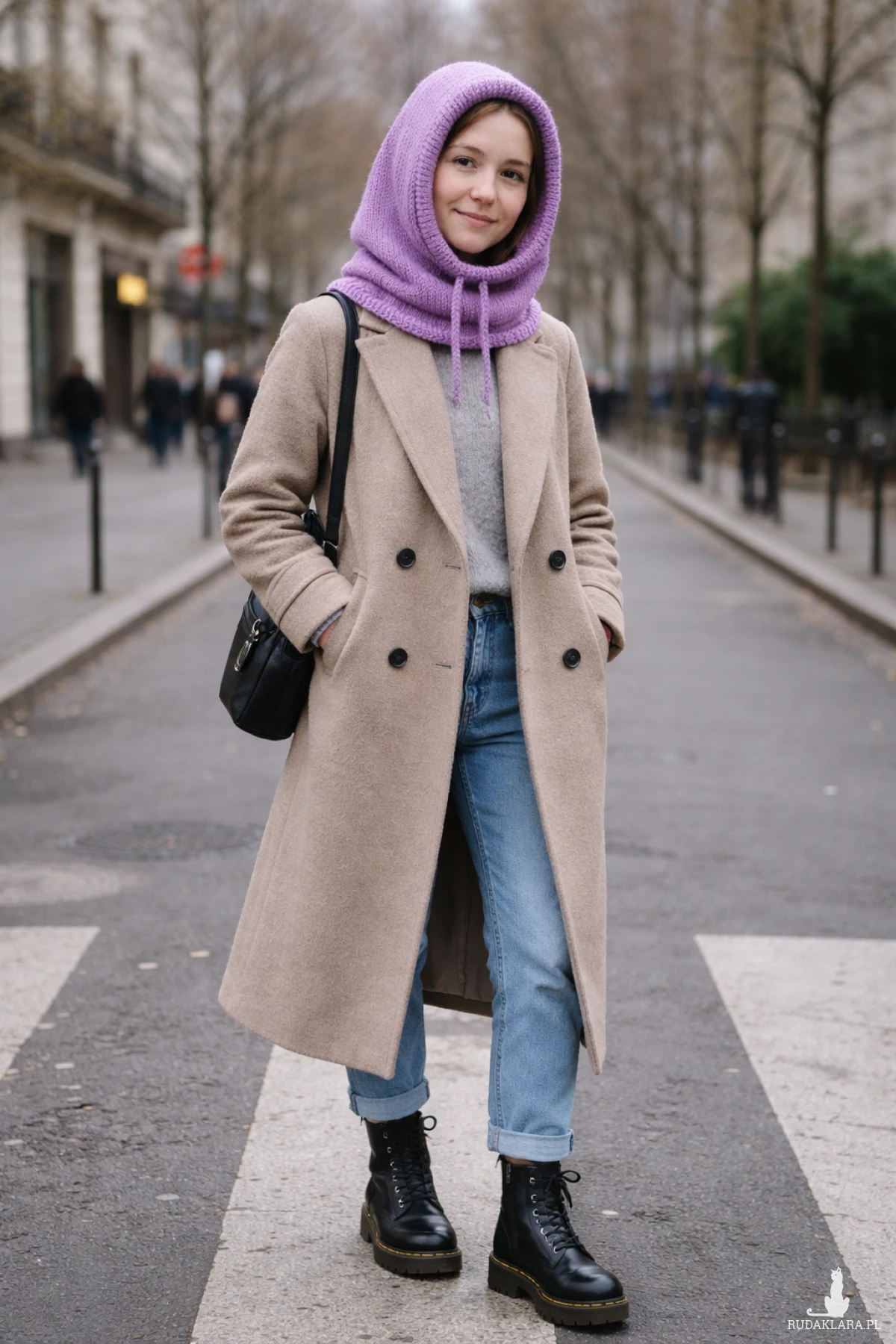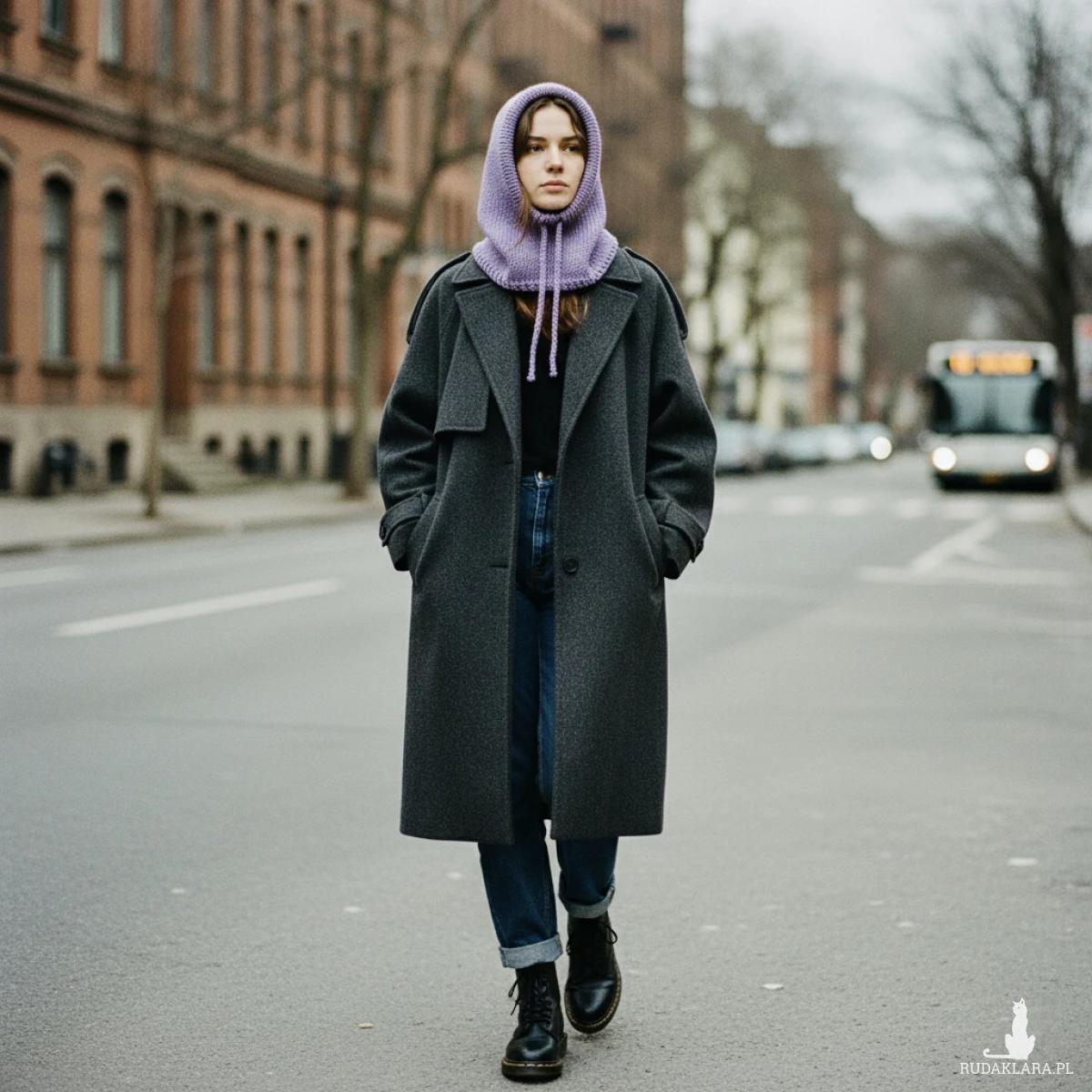 Balaclava świetnie sprawdzi się w chłodne dni – zarówno jako modny dodatek do płaszcza czy kurtki, jak i praktyczna osłona głowy i szyi podczas spacerów, jazdy na rowerze lub górskich wędrówek. Przy większym chłodzie można nałożyć ją głębiej na głowę i ściągnąć sznurki, w cieplejszą pogodę kaptur zdjęty z głowy wygląda ciekawie i efektownie.