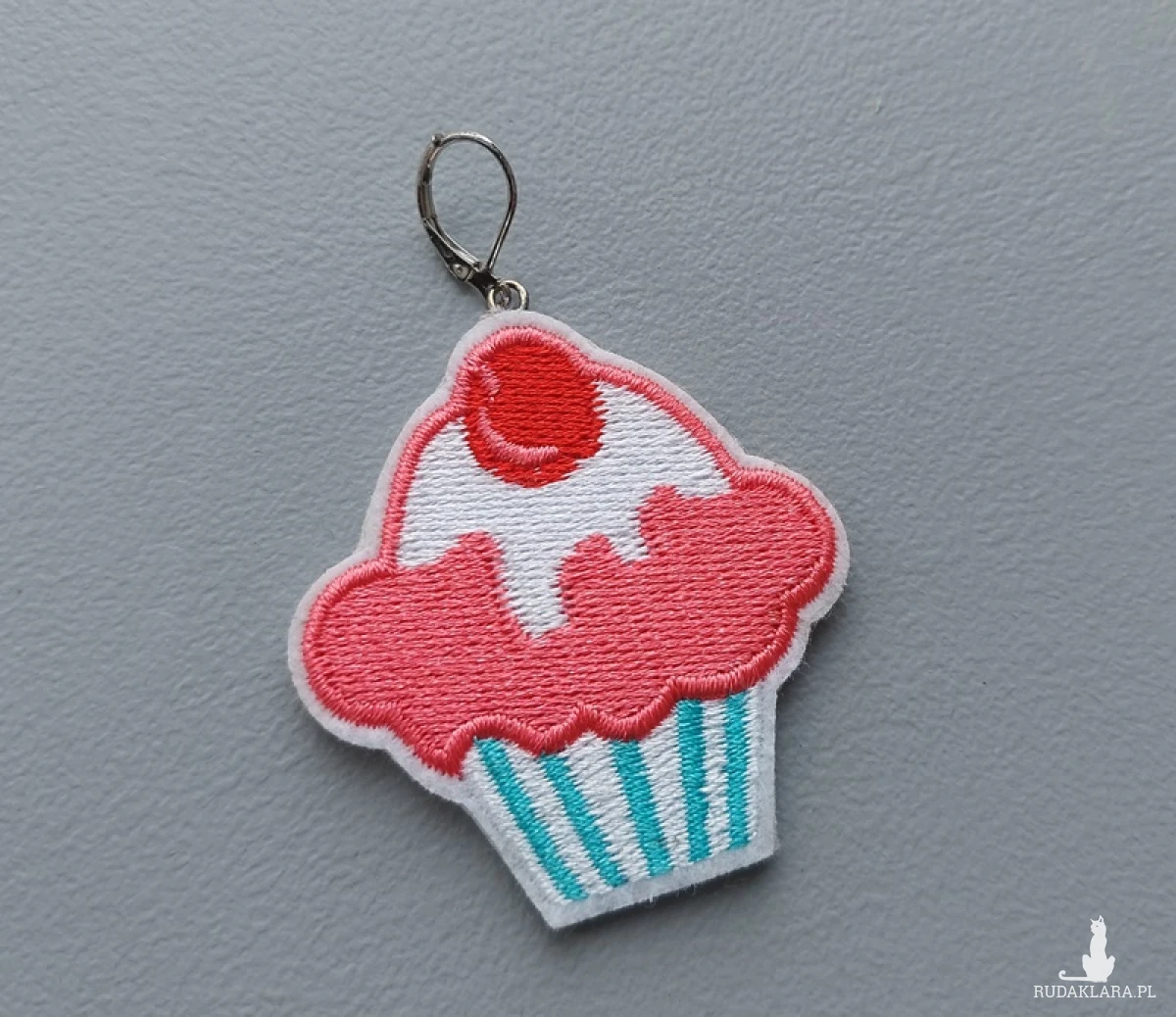 przykuwający uwagę kolczyk, który ozdobi look. Wykonany ręcznie z haftowanego