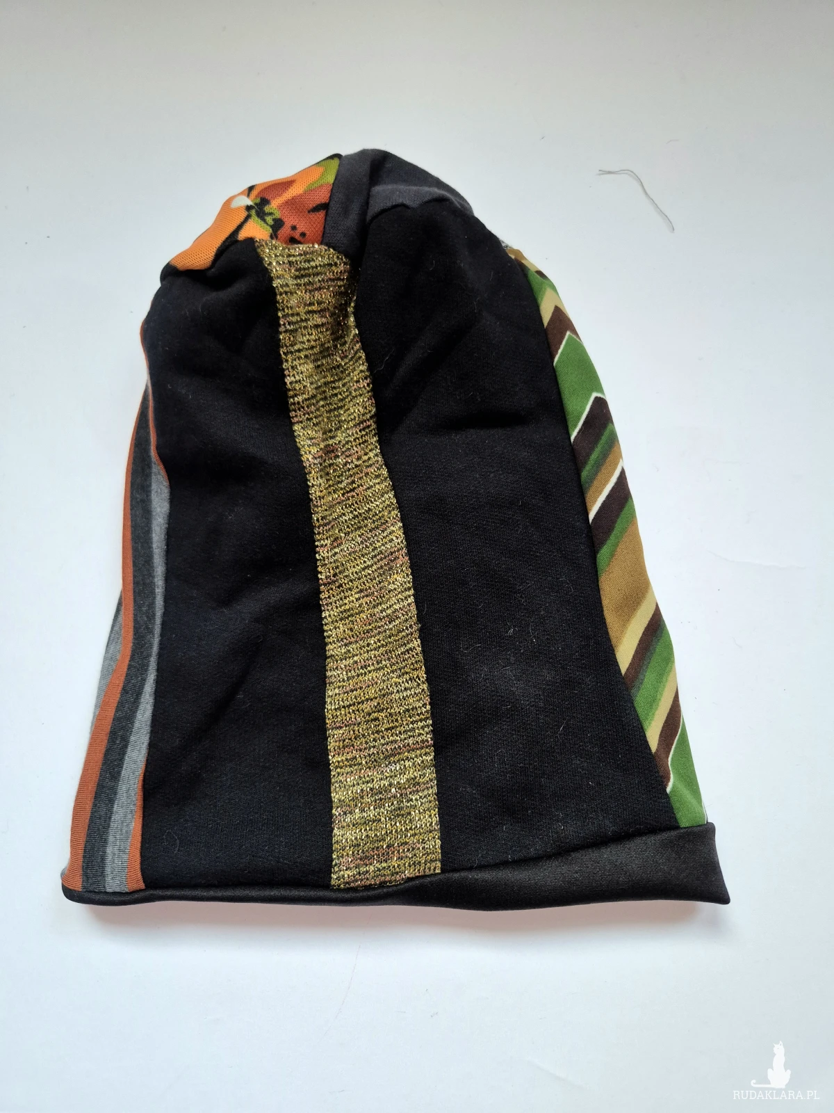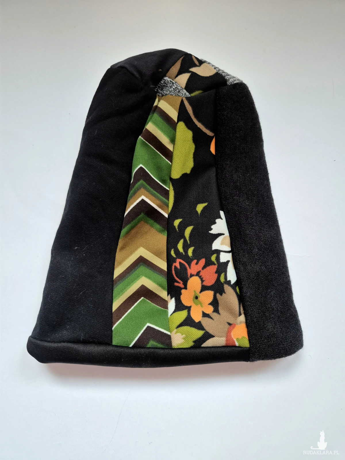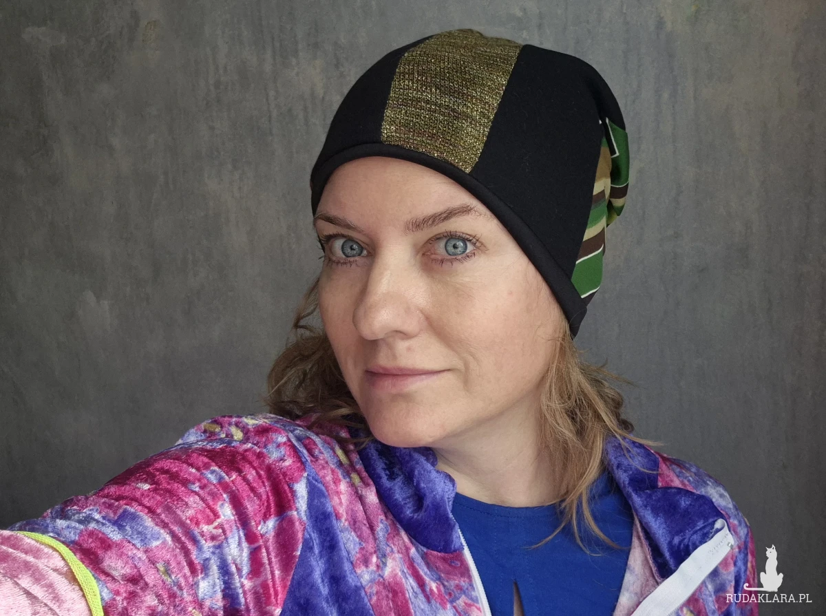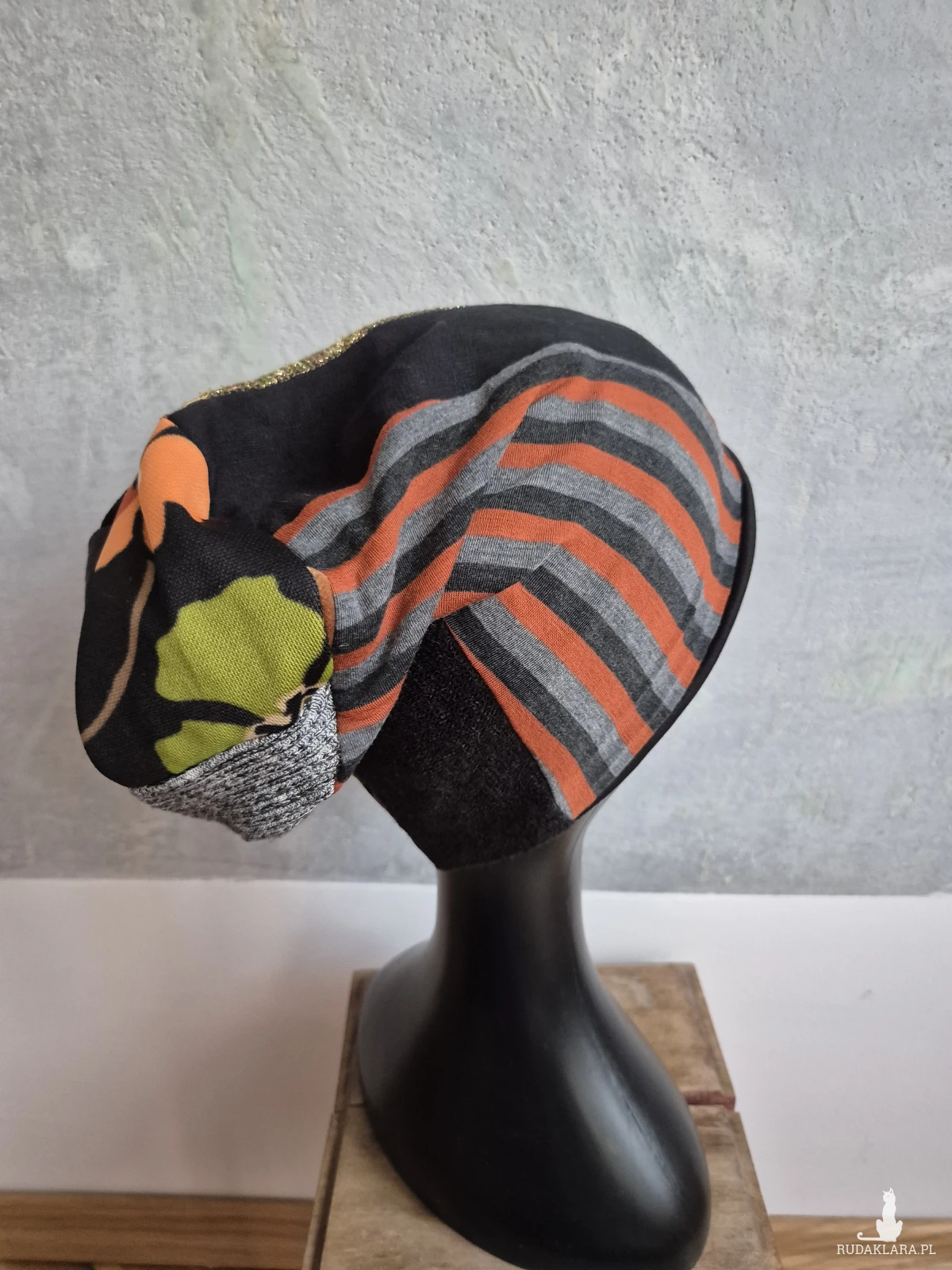 Czapka damska Smerfetka patchworkowa, na podszewce dobra na codzienne noszenie, wykonana w pojedynczym egzemplarzu rękodzieło polecam boks t1