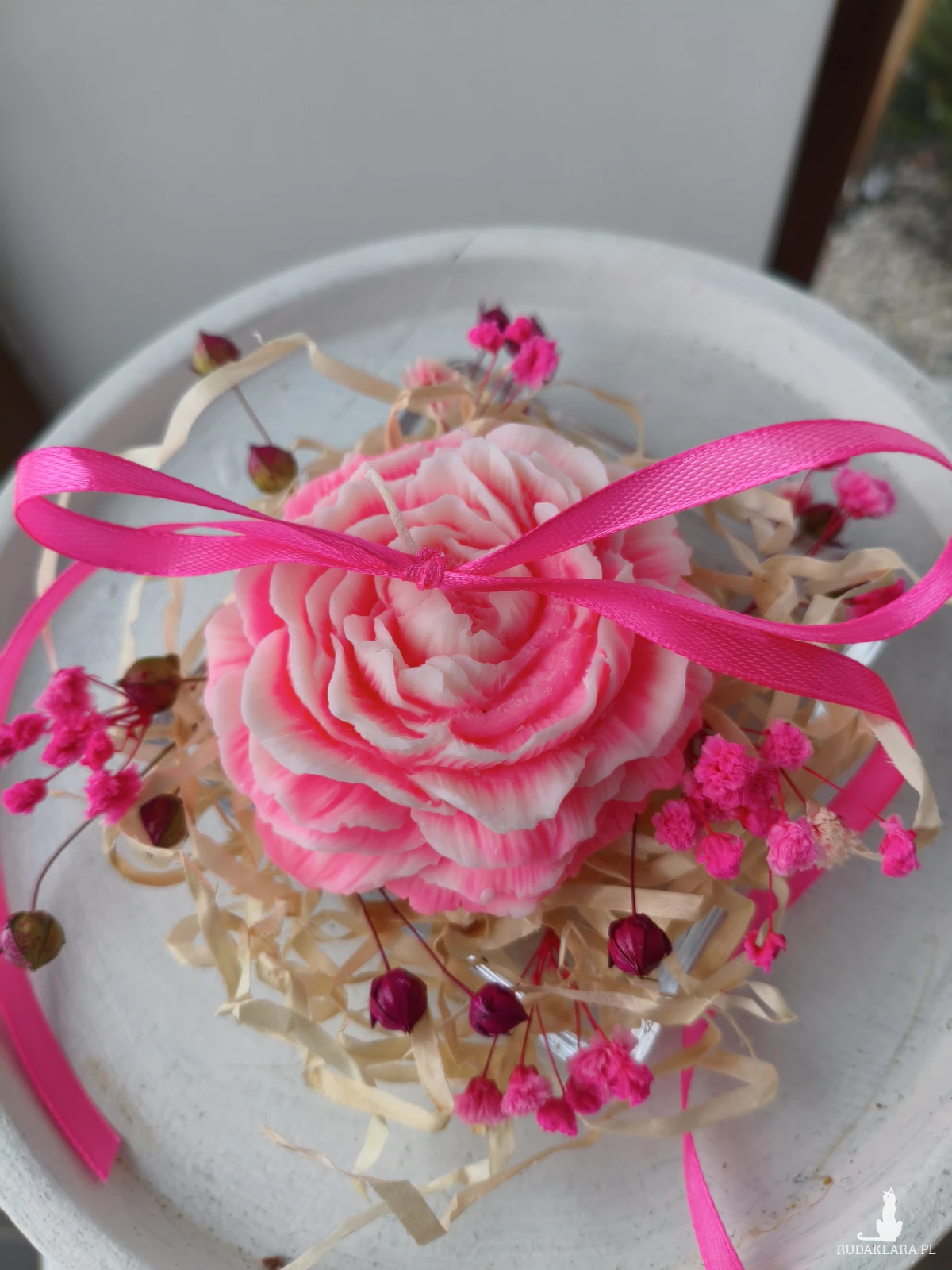 Świeca została dekoracyjnie zapakowana oraz starannie dobrane suszone kwiaty i inne dodatki. Idealna na urodziny, rocznice, ślub, walentynki, dzień kobiet, chrzest, komunię czy jako podziękowanie, łączy piękno natury z delikatnym aromatem, tworząc niezapomniane wrażenia.