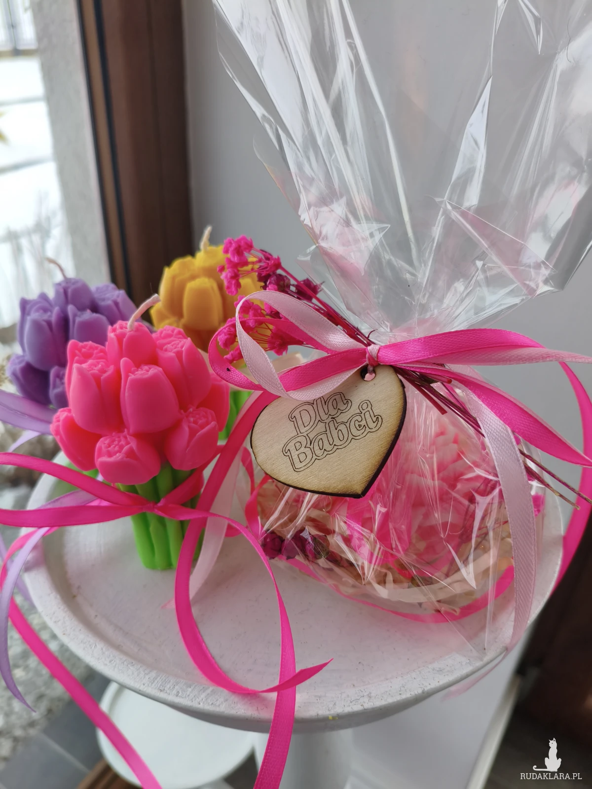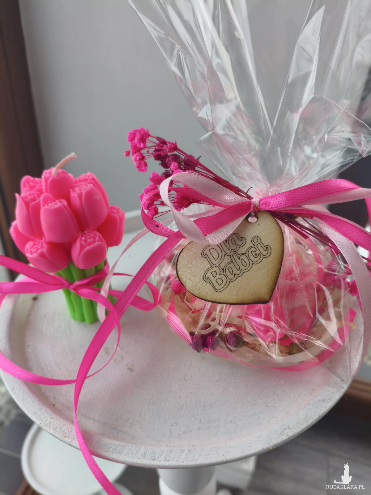 Dekoracyjnie zapakowana z zawieszką "Dzień Babci"