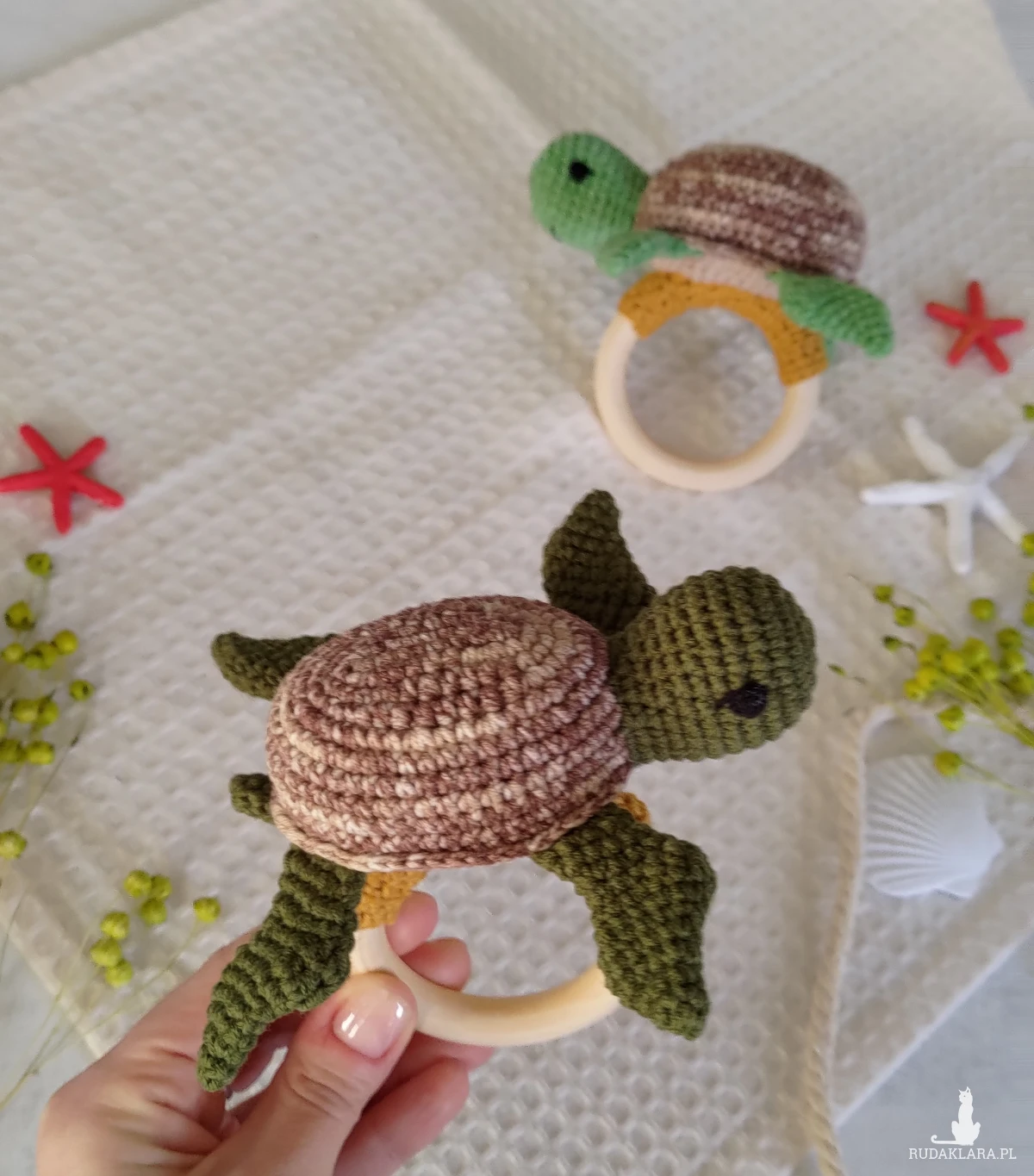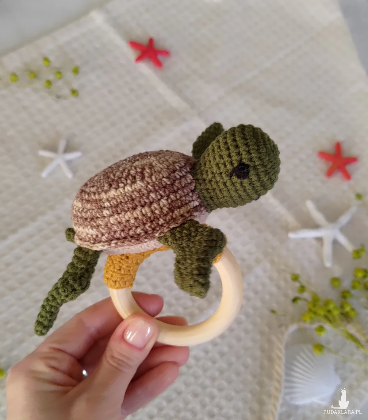 Szydełkowana grzechotka z żółwikiem to idealna pierwsza zabawka dla Twojego maluszka!