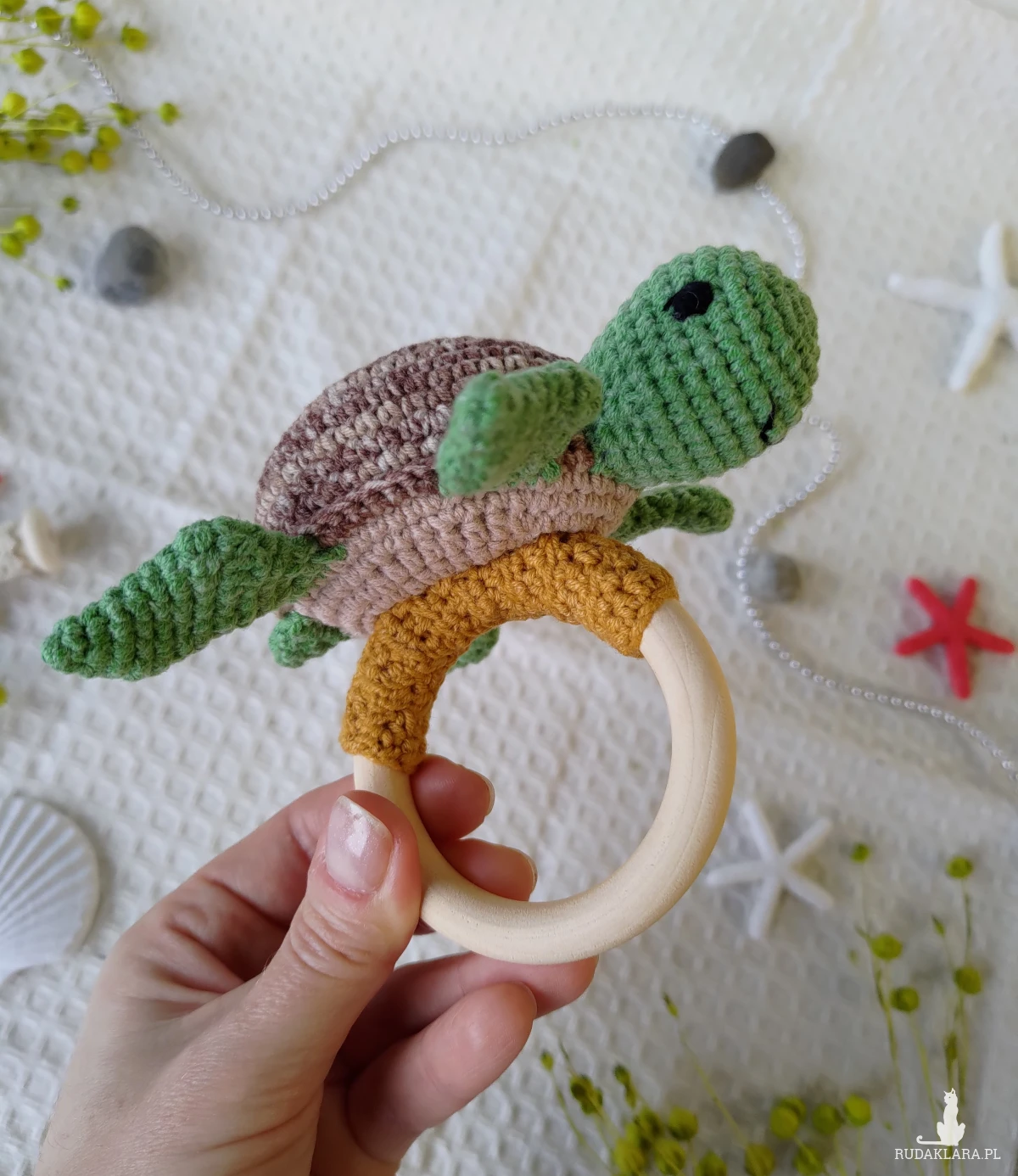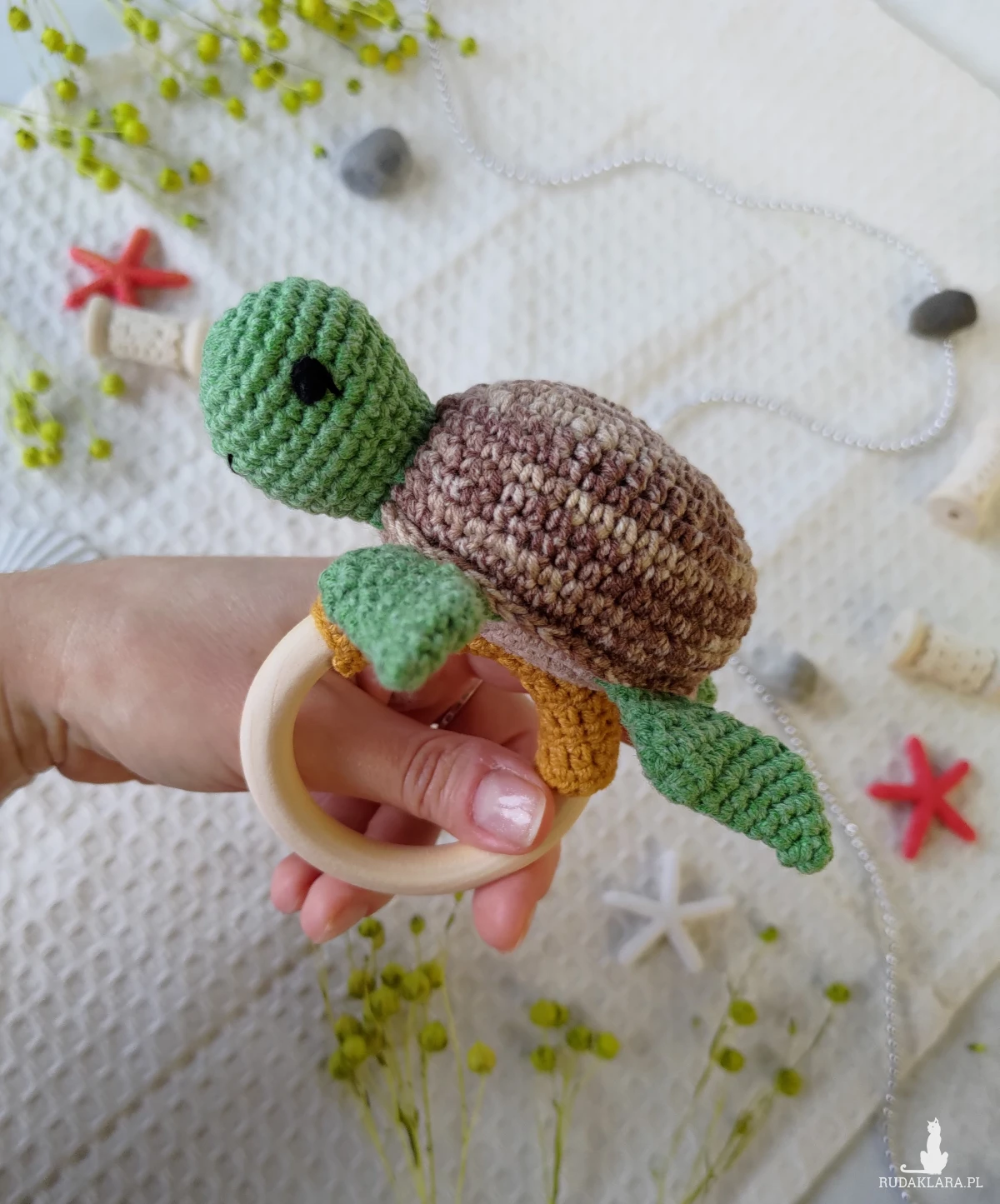Szydełkowana grzechotka z żółwikiem to idealna pierwsza zabawka dla Twojego maluszka!