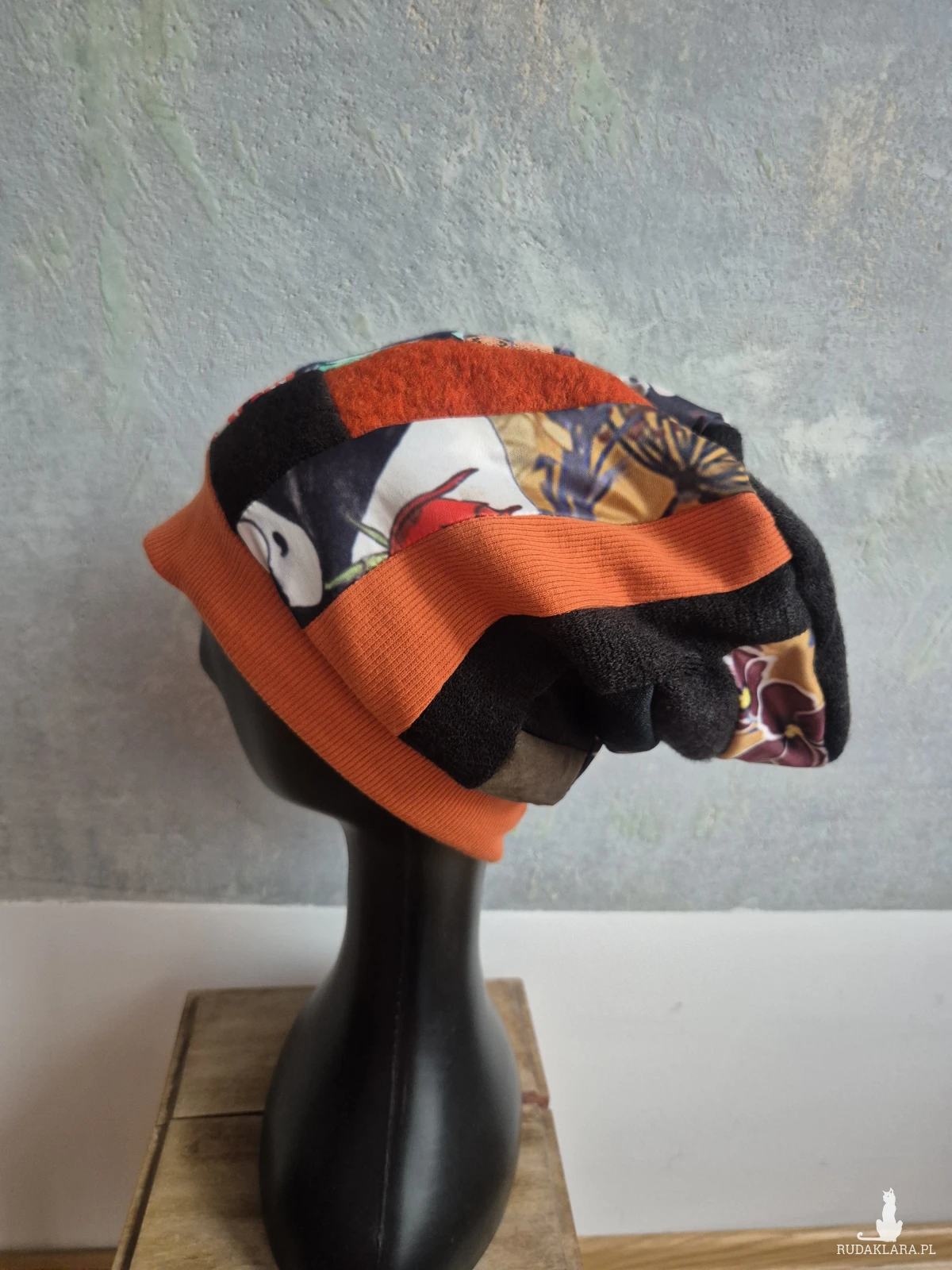 Czapka damska Smerfetka patchworkowa, na podszewce dobra na codzienne noszenie, wykonana w pojedynczym egzemplarzu rękodzieło polecam boks d1