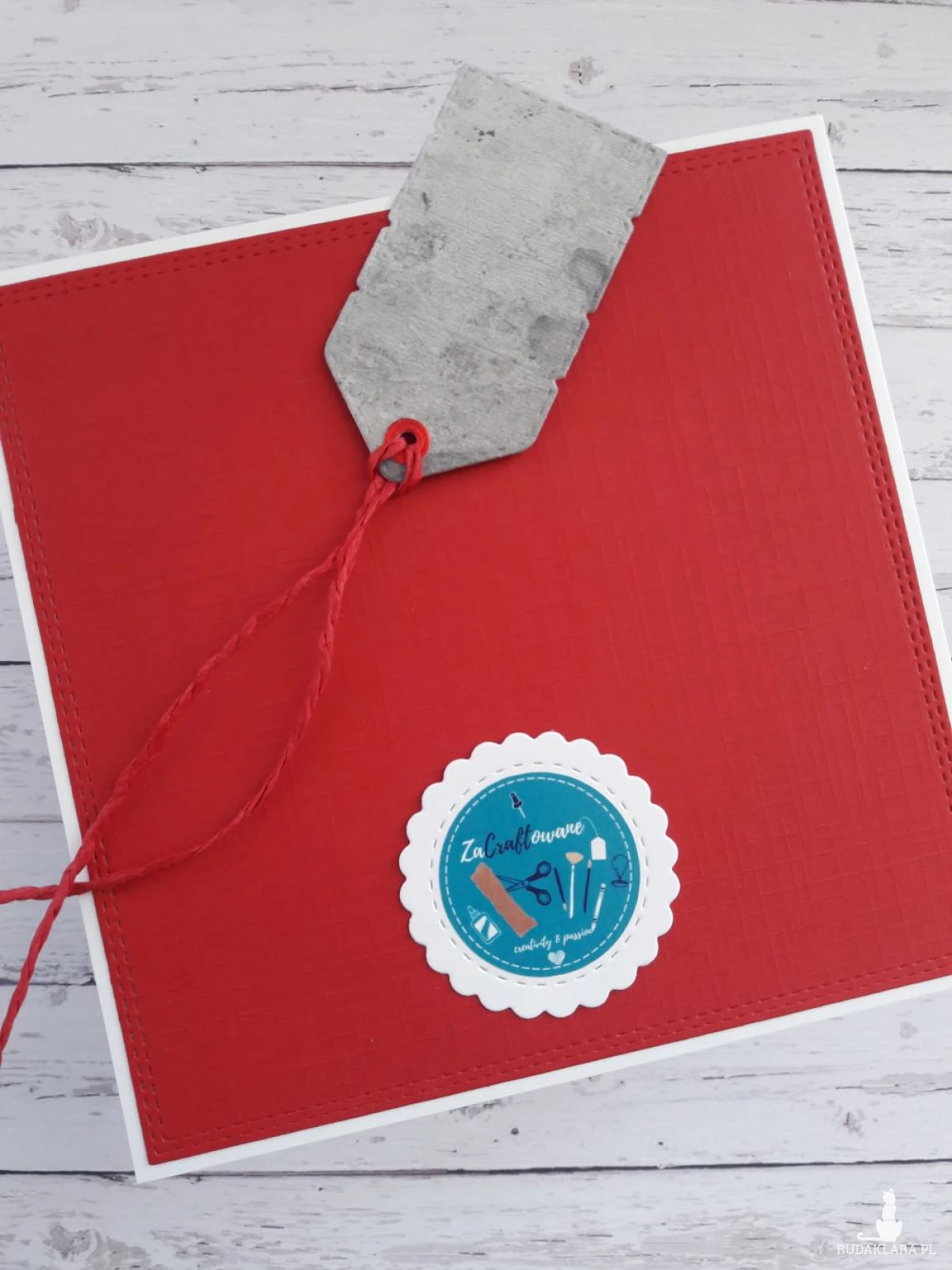 Do kartki dołączam GRATIS w postaci widocznej na zdjęciu etykietki, za pomocą której można podpisać upominek walentynkowy i przyczepić ją do wstążki, którą obwiązany jest prezent, za pomocą sznureczka, który również znajduje się w zestawie.