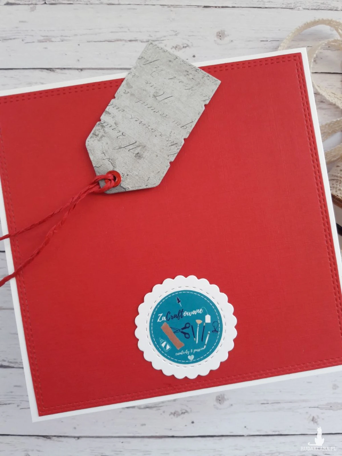 Do kartki dołączam GRATIS w postaci widocznej na zdjęciu etykietki, za pomocą której można podpisać upominek walentynkowy i przyczepić ją do wstążki, którą obwiązany jest prezent, za pomocą sznureczka, który również znajduje się w zestawie.