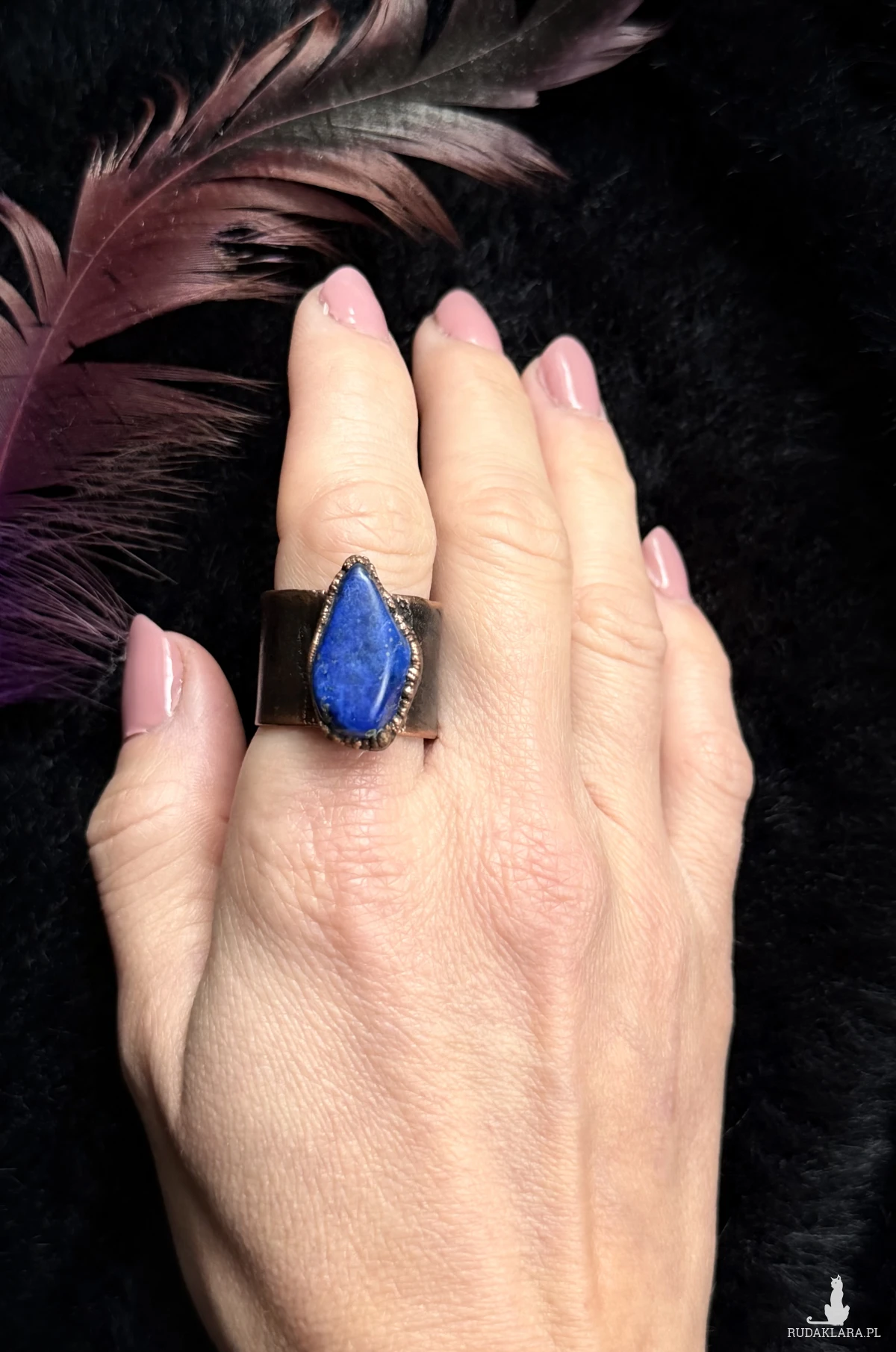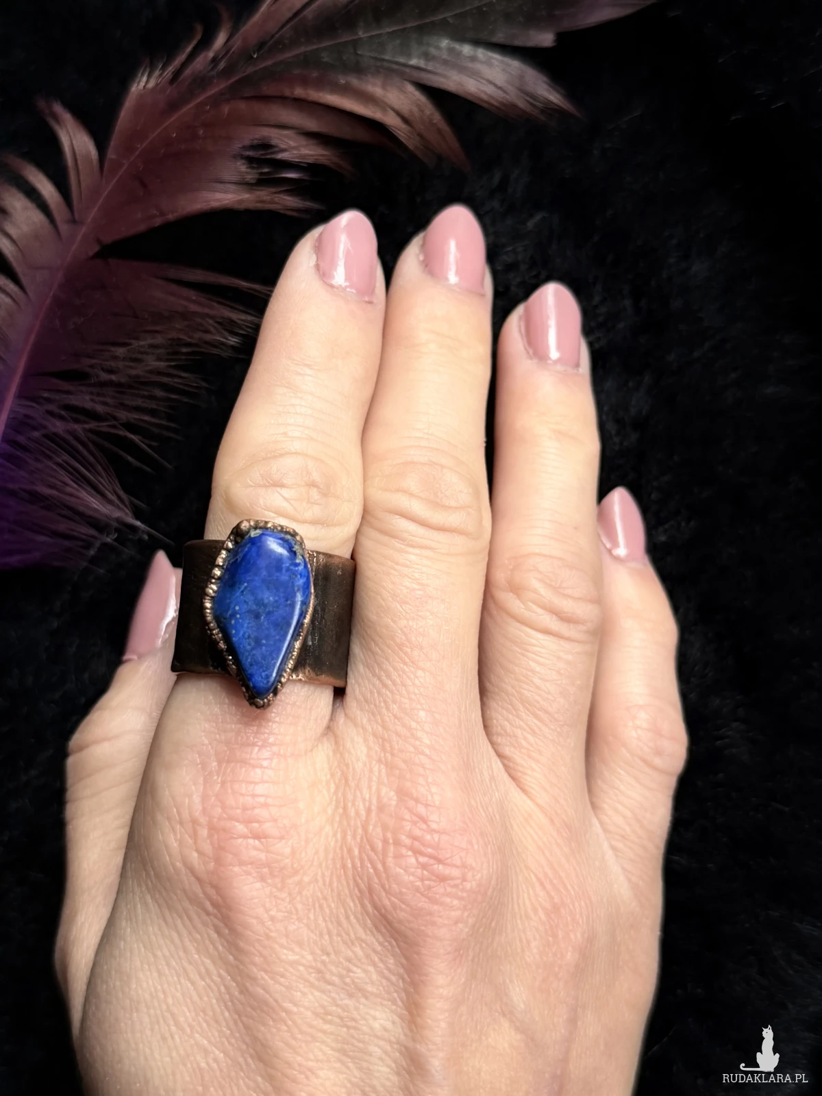 Miedziany pierścionek z sodalitem, rozmiar 23 (obwód palca 63mm)