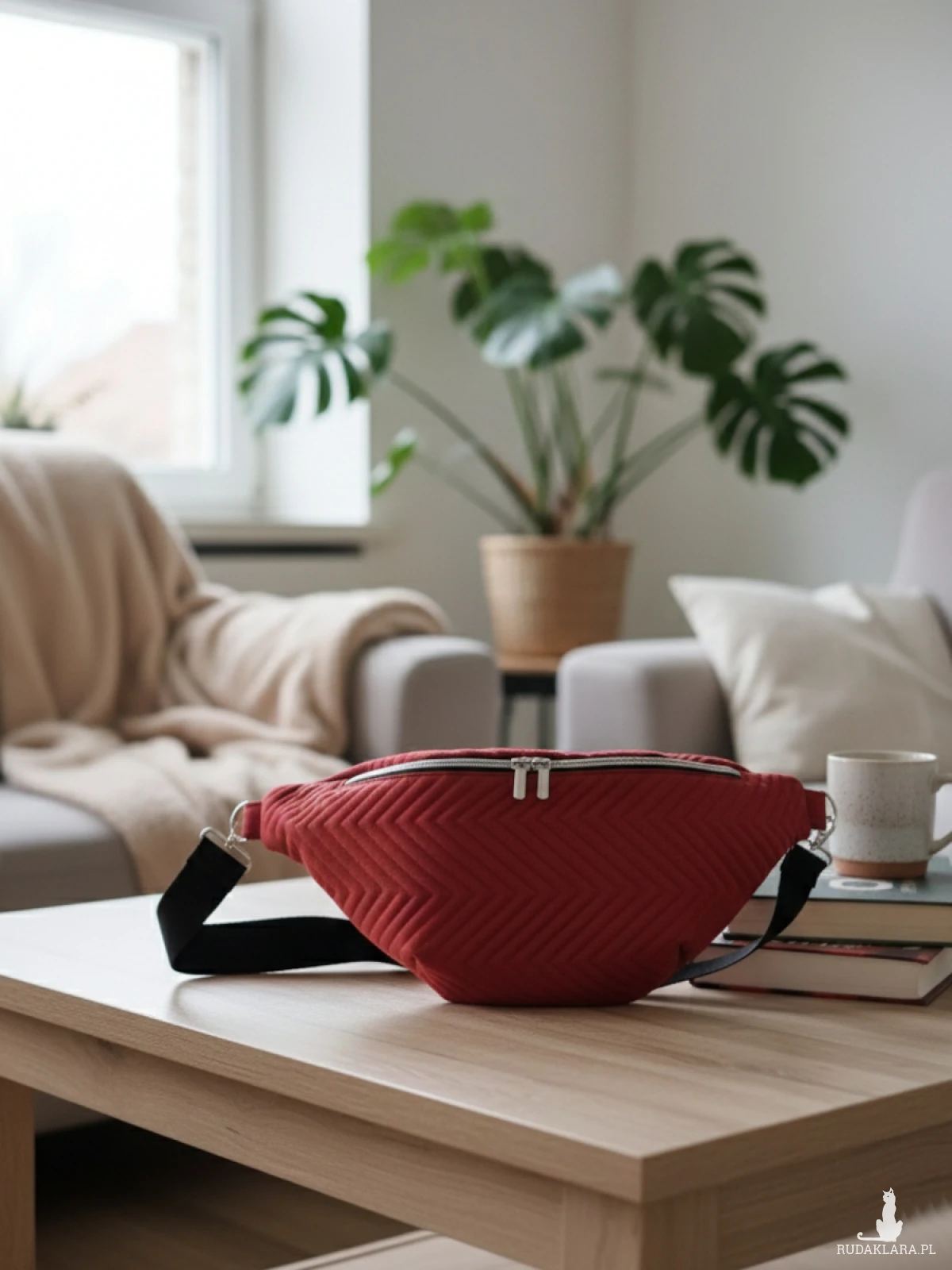 W przeciwieństwie do klasycznych, sztywnych nerek, model BORDEAUX został uszyty z miękkiej, wodoodpornej tkaniny tapicerskiej, dzięki czemu dobrze układa się na ciele i nie odstaje podczas noszenia. Duży rozmiar pozwala wygodnie uporządkować zawartość, a dwa suwaki umożliwiają szybki dostęp do wnętrza. Wbudowany karabińczyk na klucze eliminuje problem ich szukania, a otwarta kieszonka ułatwia przechowywanie mniejszych przedmiotów.