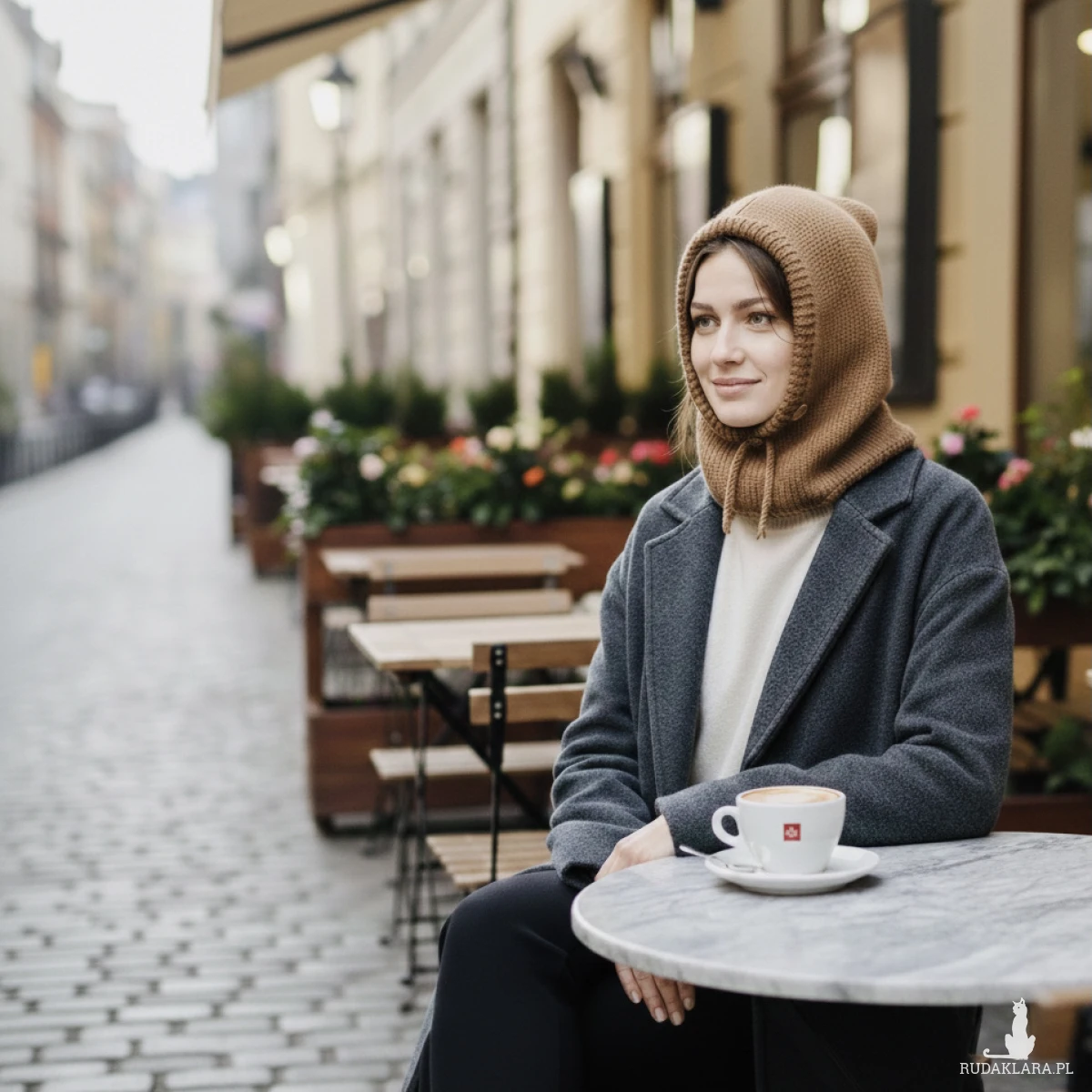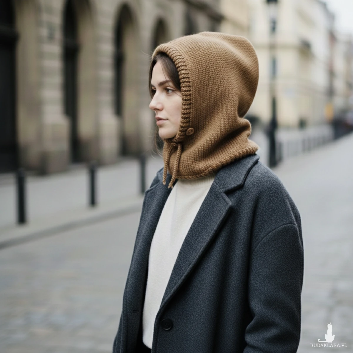 Balaclava świetnie sprawdzi się w chłodne dni – zarówno jako modny dodatek do płaszcza czy kurtki, jak i praktyczna osłona głowy i szyi podczas spacerów, jazdy na rowerze lub górskich wędrówek. Przy większym chłodzie można nałożyć ją głębiej na głowę i ściągnąć sznurki, w cieplejszą pogodę kaptur zdjęty z głowy wygląda ciekawie i efektownie.