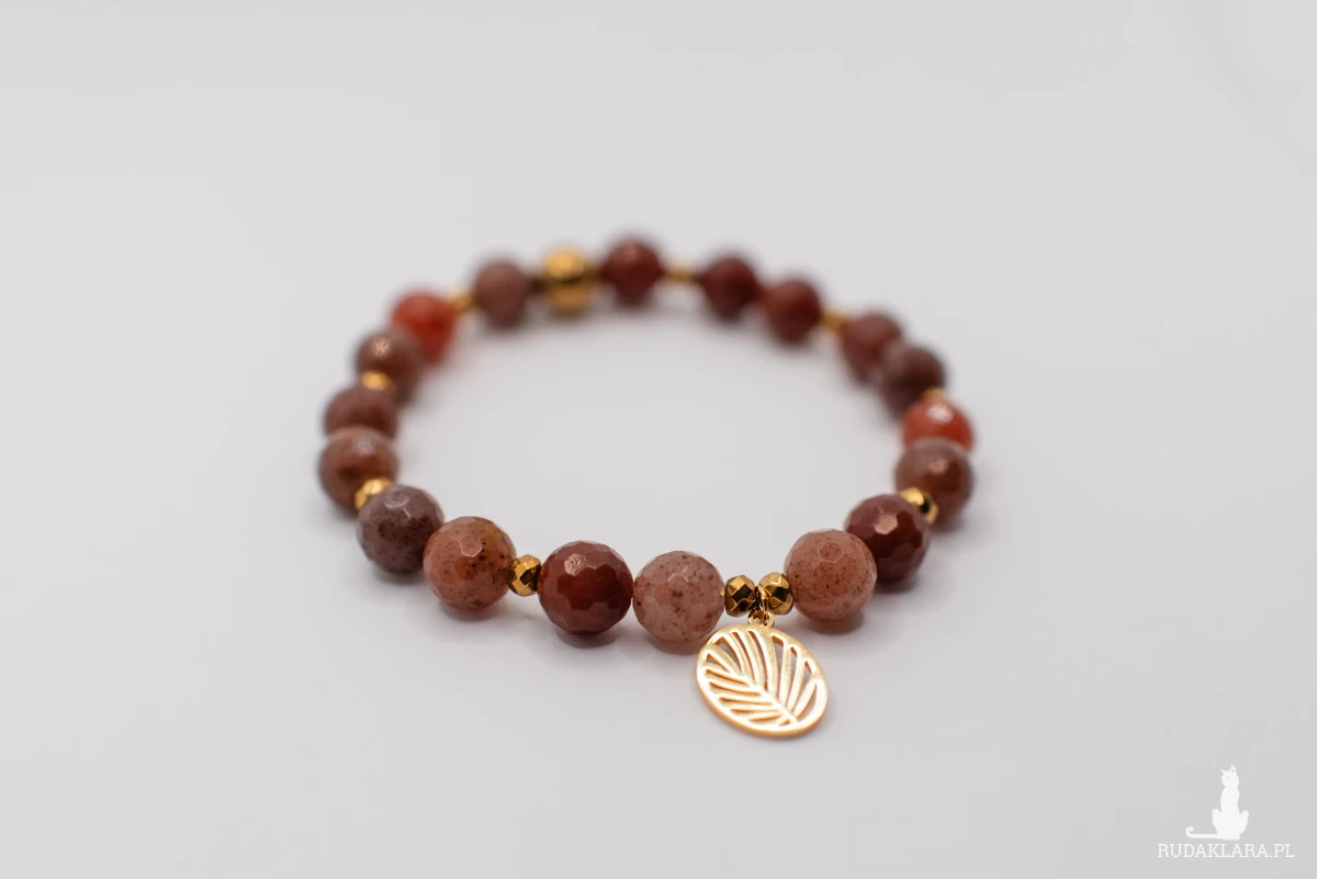 Brązowy awenturyn symbolizuje stabilność, spokój i uziemienie. Jego delikatne refleksy dodają bransoletce naturalnego blasku i wyjątkowego charakteru.