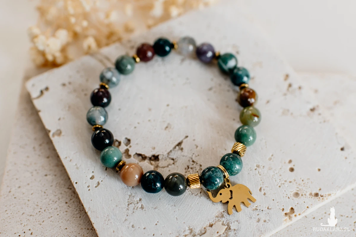 Agat indyjski równoważy emocje, przynosi spokój oraz łagodzi napięcia, zwiększa poczucie bezpieczeństwa i wspiera wewnętrzną harmonię, wspiera rozwój osobisty oraz wzmacnia koncentrację i cierpliwość.