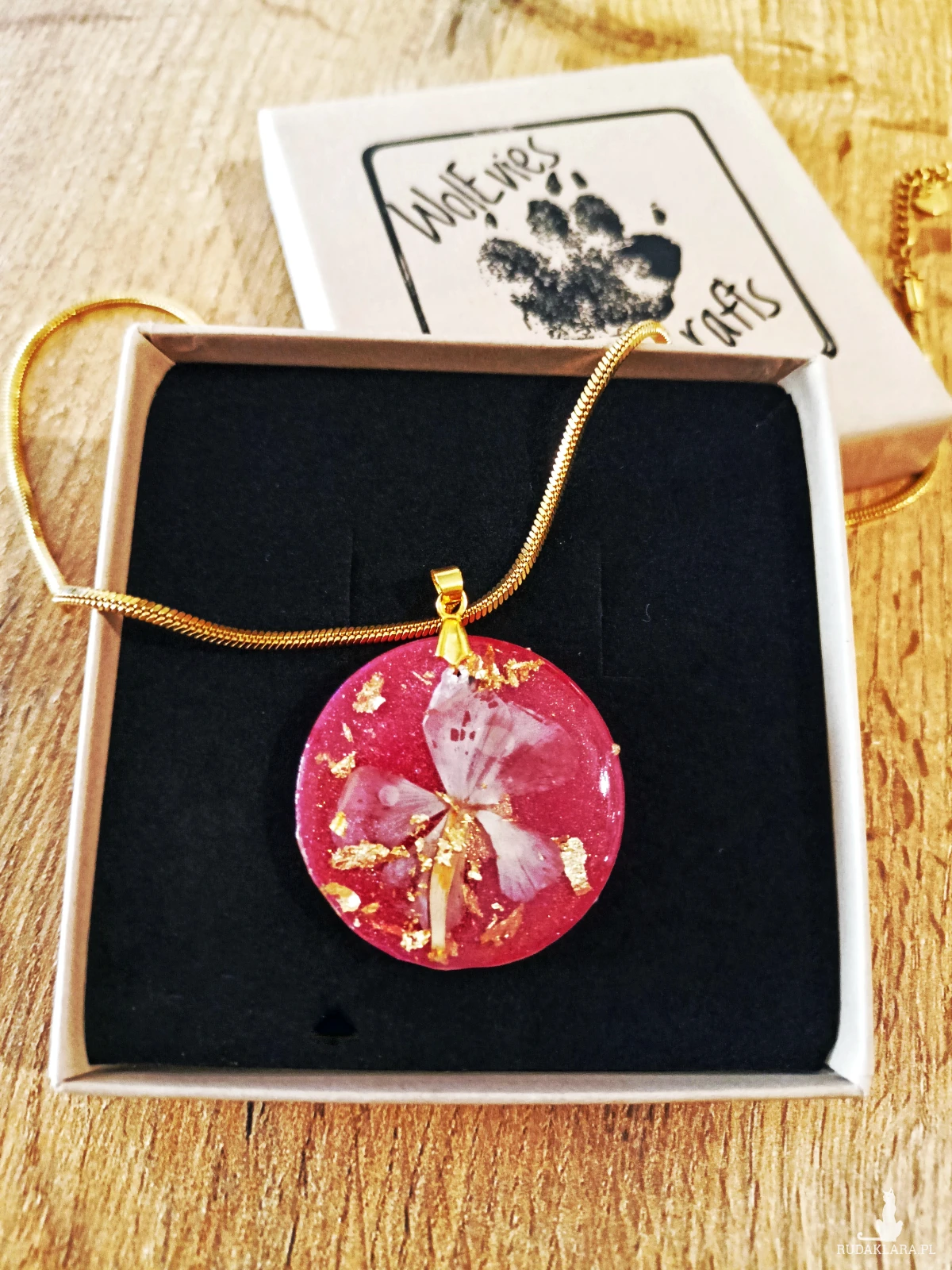 wisiorek z żywicy, wisiorek handmade, wisiorek z kwiatem, biżuteria z żywicy resin pro, prezent na dzień babci, zawieszka z suszonym kwiatem, biżuteria naturalna, wisiorek różowy złoty, duży wisiorek ozdobny, biżuteria rękodzieło
