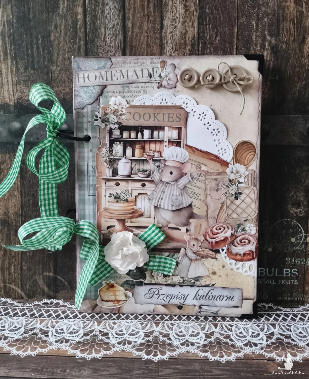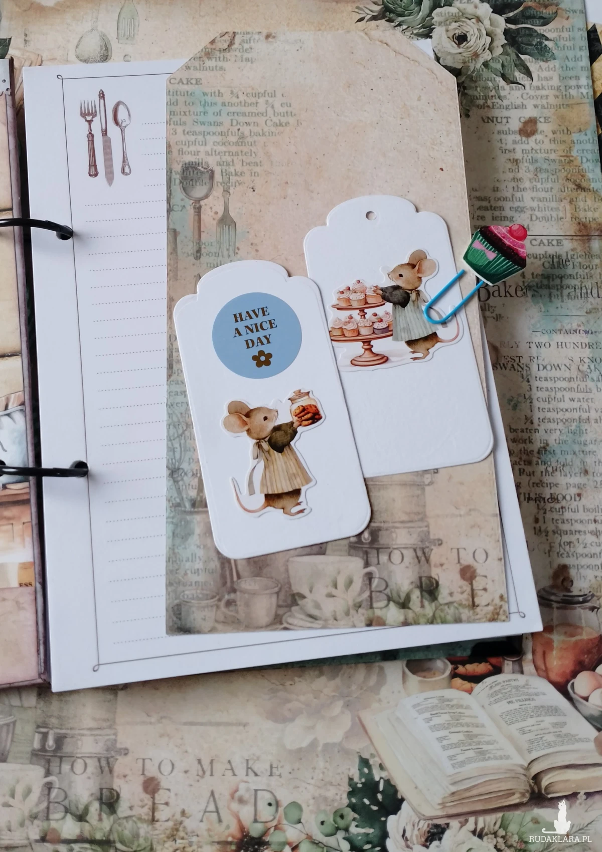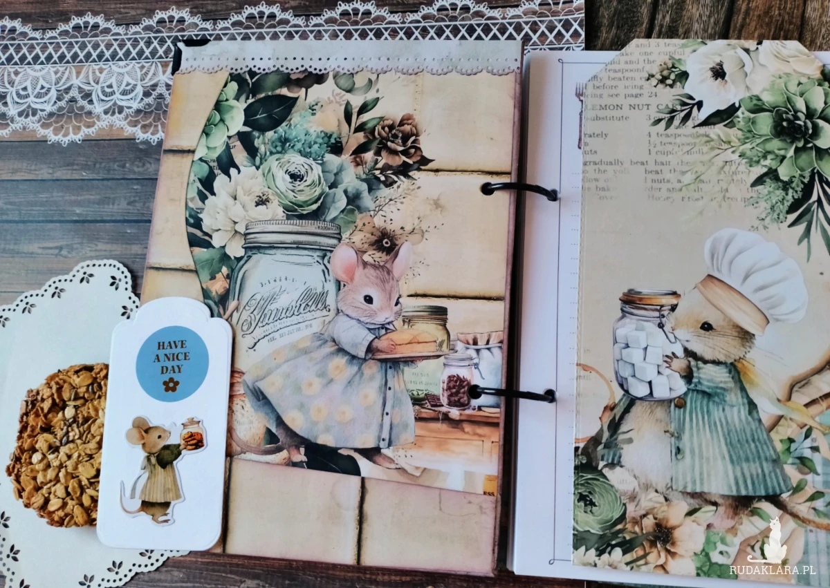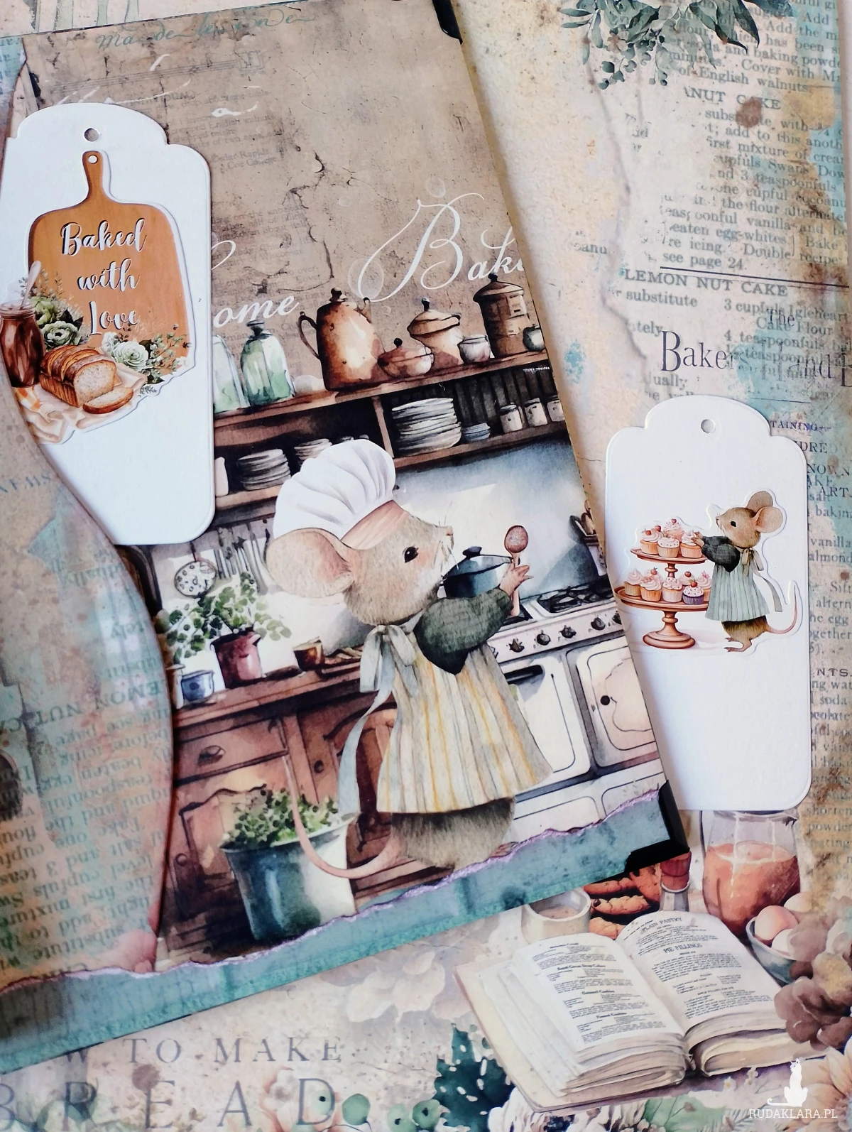 Unikalny design oddaje istotę tradycyjnego domowego pieczenia, z obrazkami rustykalnego klimatu, wspaniałych kwiatów, myszek kucharek i słodkich smakołyków, wszystko w przytulnej palecie kolorów przypominającej klasyczną wiejską kuchnię.