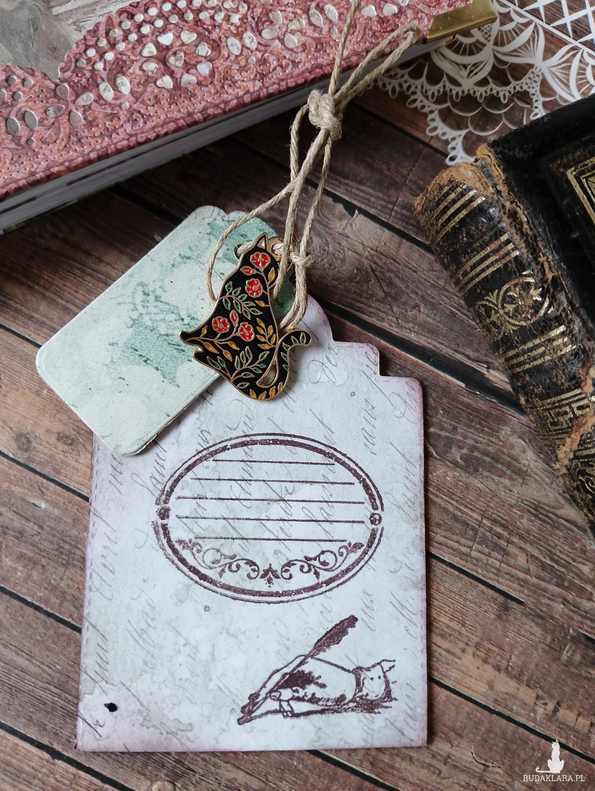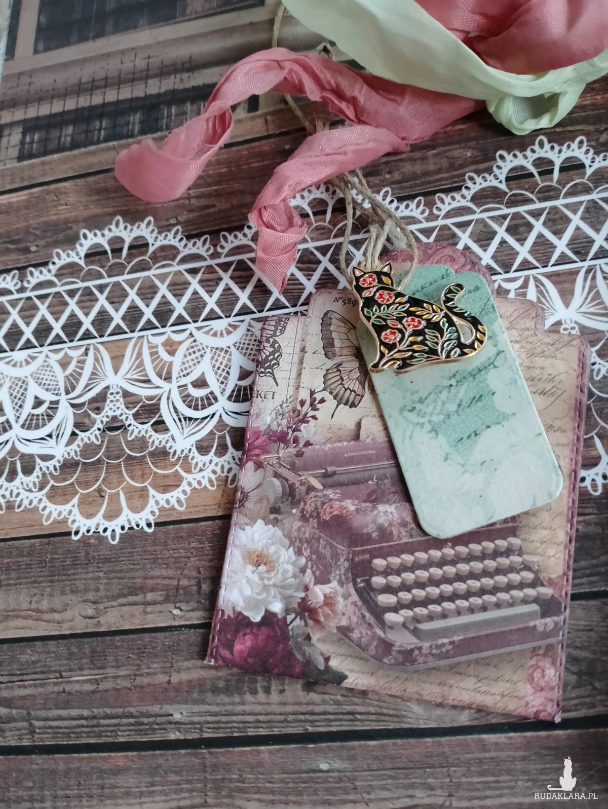 Format A5/100 kartek w linie, okładki twarde introligatorskie Wewnątrz notesu tagi ozdobne, 3 przekładki ozdobne Spięty otwieranymi kółkami można wpinać karteczki, liściki . W komplecie metalowa zawieszka kot oraz zakładka.