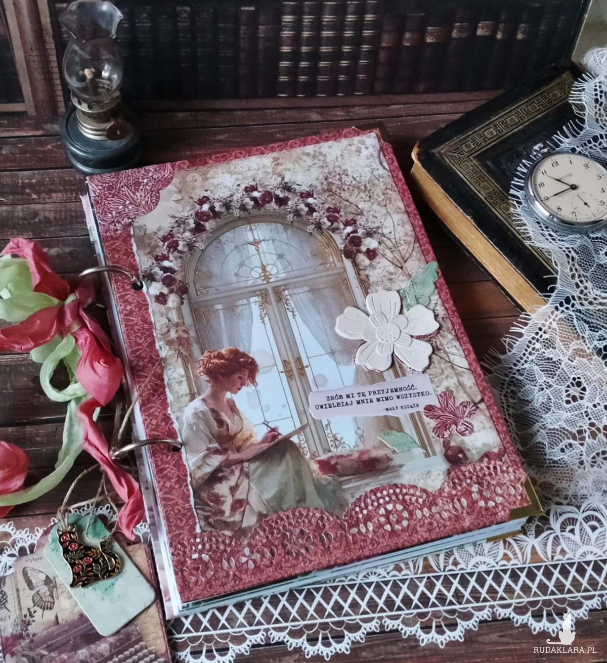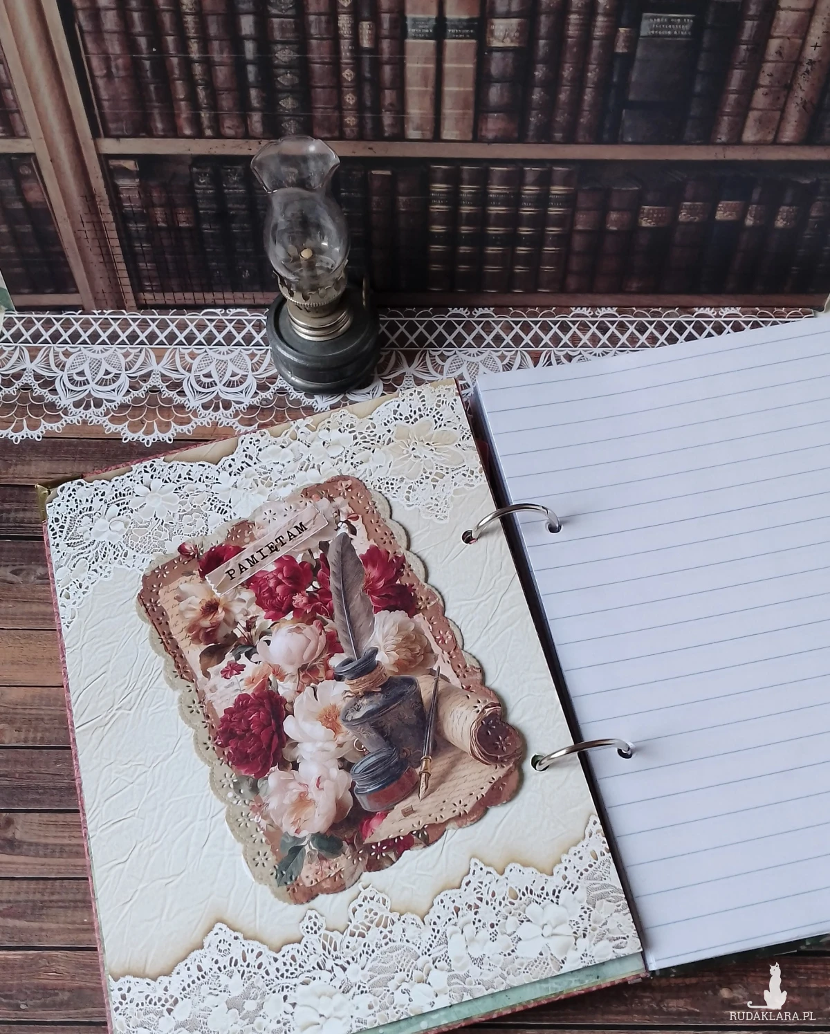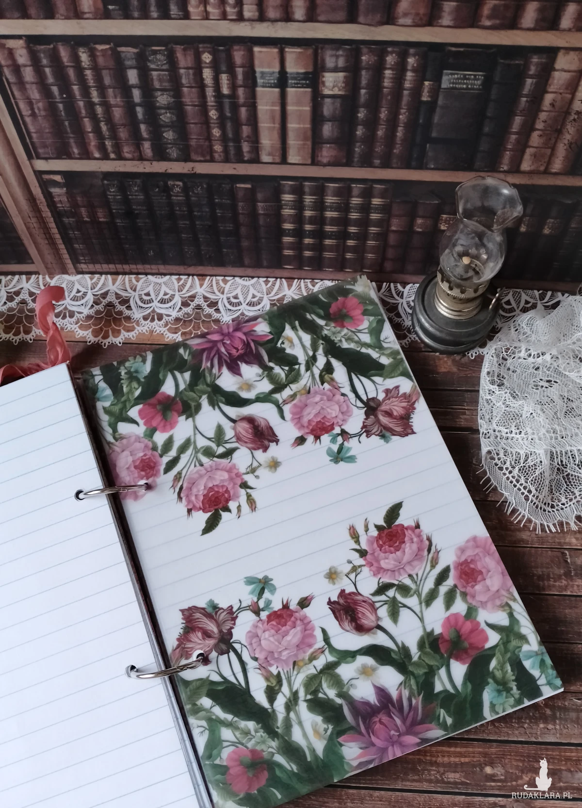 Romantyczny notes wykonany z włoskiej marki papierów w stylu vintage.Można prowadzić w nim pamiętnik, zapisywać ulubione cytaty, przechować wszystkie ważne notatki.