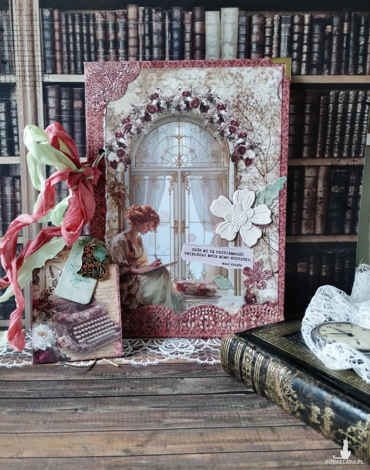 Opakowany dekoracyjnie w folię cylofanową idealnie przeźroczysta będzie pięknie eksponować zawartość.Wykonany ręcznie techniką scrapbooking.