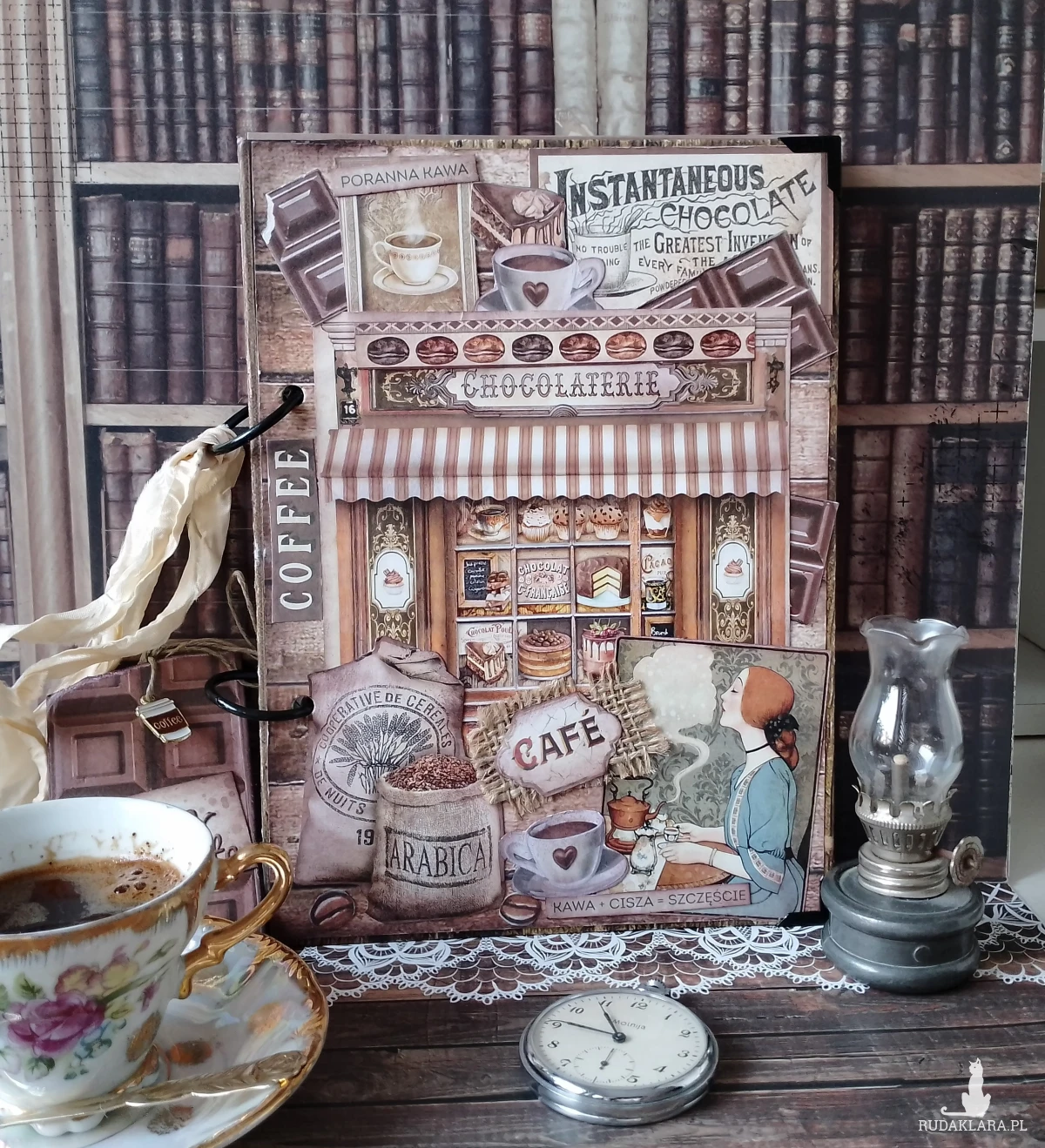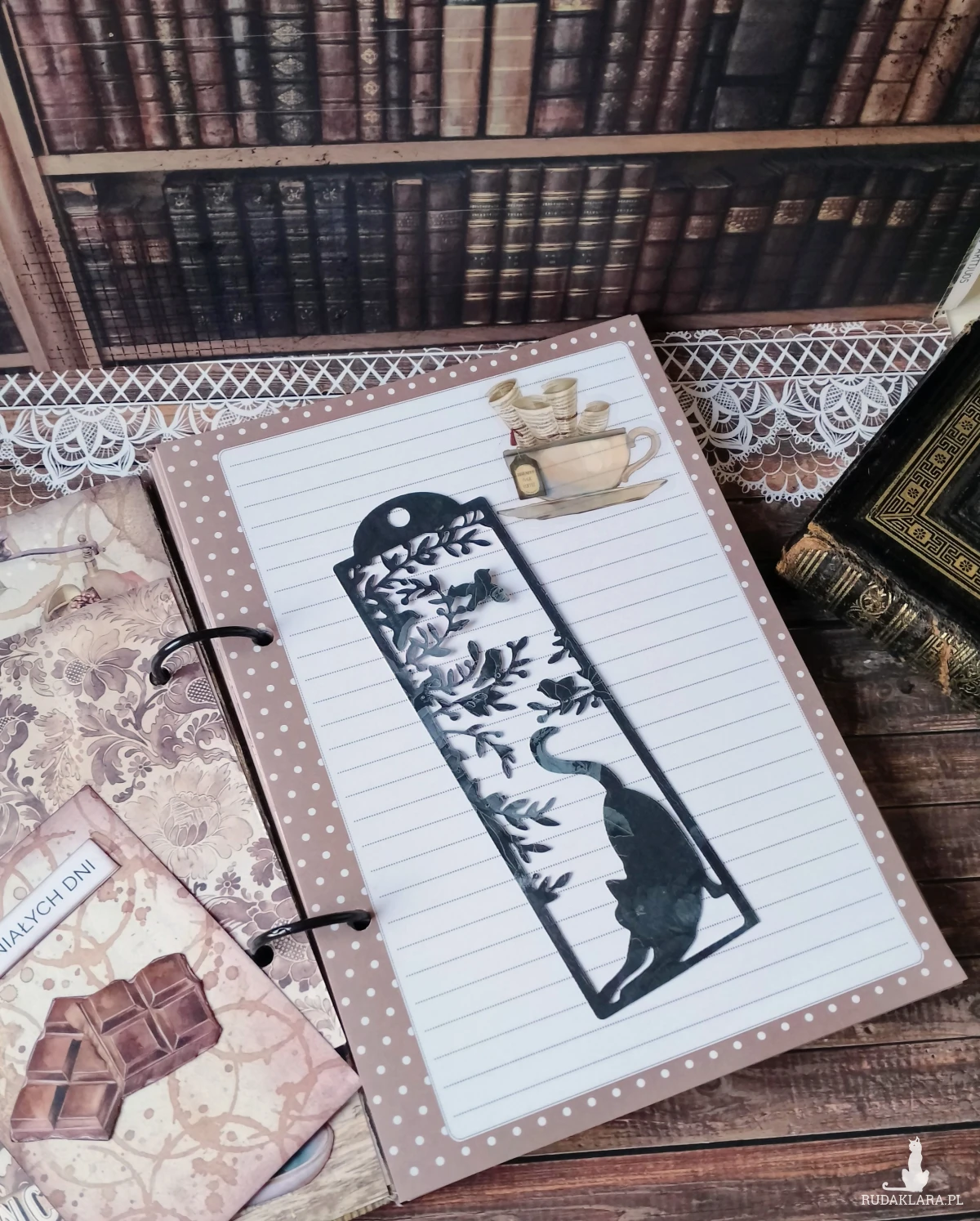 W komplecie zakładka do notesu, tagi, przekładka ,metalowa zawieszka coffee.