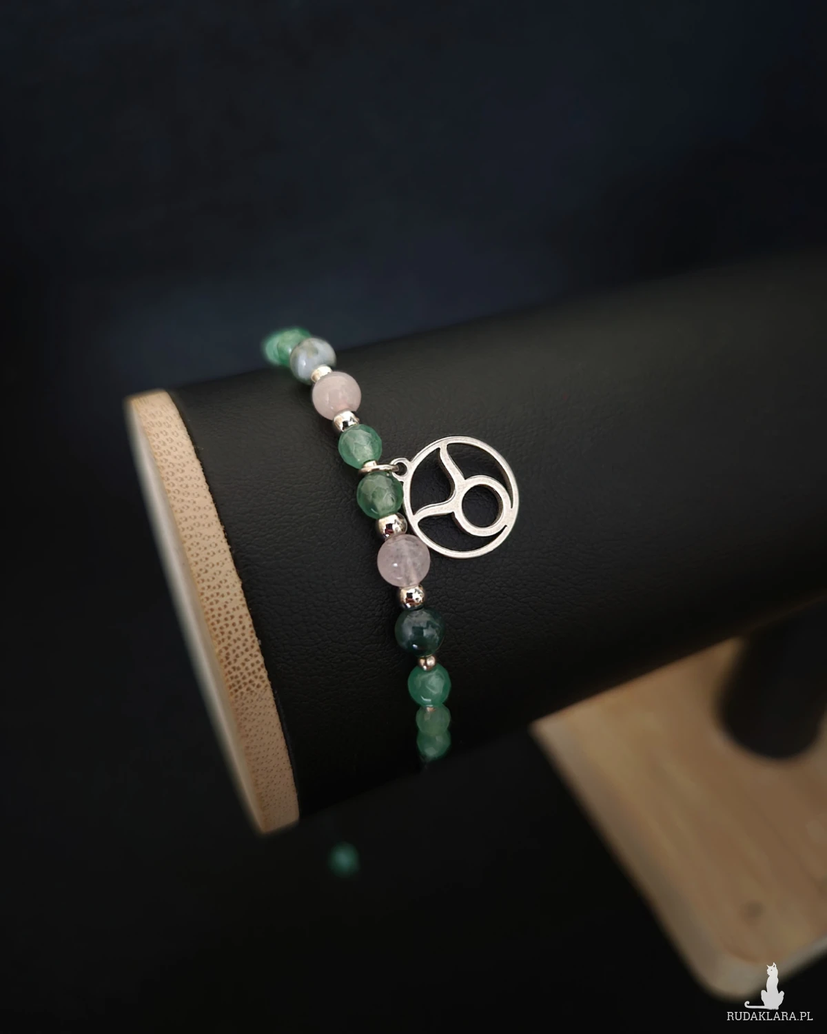 Agat mszysty i awenturyn wzmacniają poczucie bezpieczeństwa, równowagi i obfitości, podczas gdy kwarc różowy wnosi miękkość, empatię i emocjonalną harmonię. Kolorystycznie bransoletka nawiązuje do natury — zieleni, spokoju i stabilności — które są niezwykle ważne dla Byka.