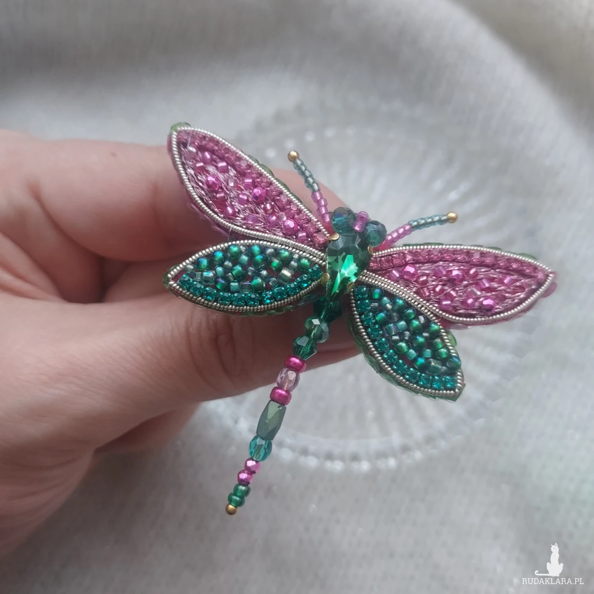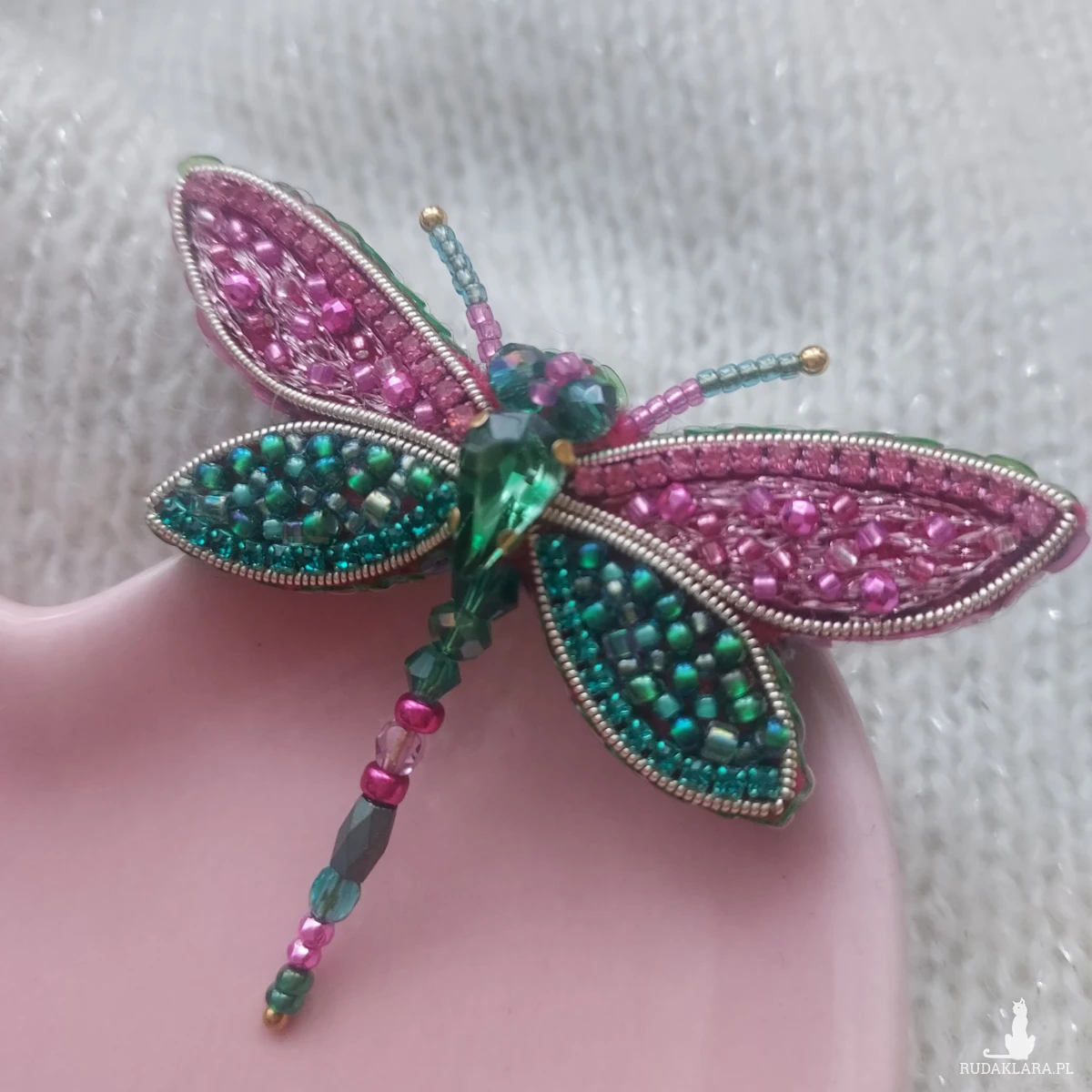 Mam dla Was wyjątkowa, orginalną, artystyczną broszķe ważkę w kolorze zieleni, fuksji iraz odrobiny różu.