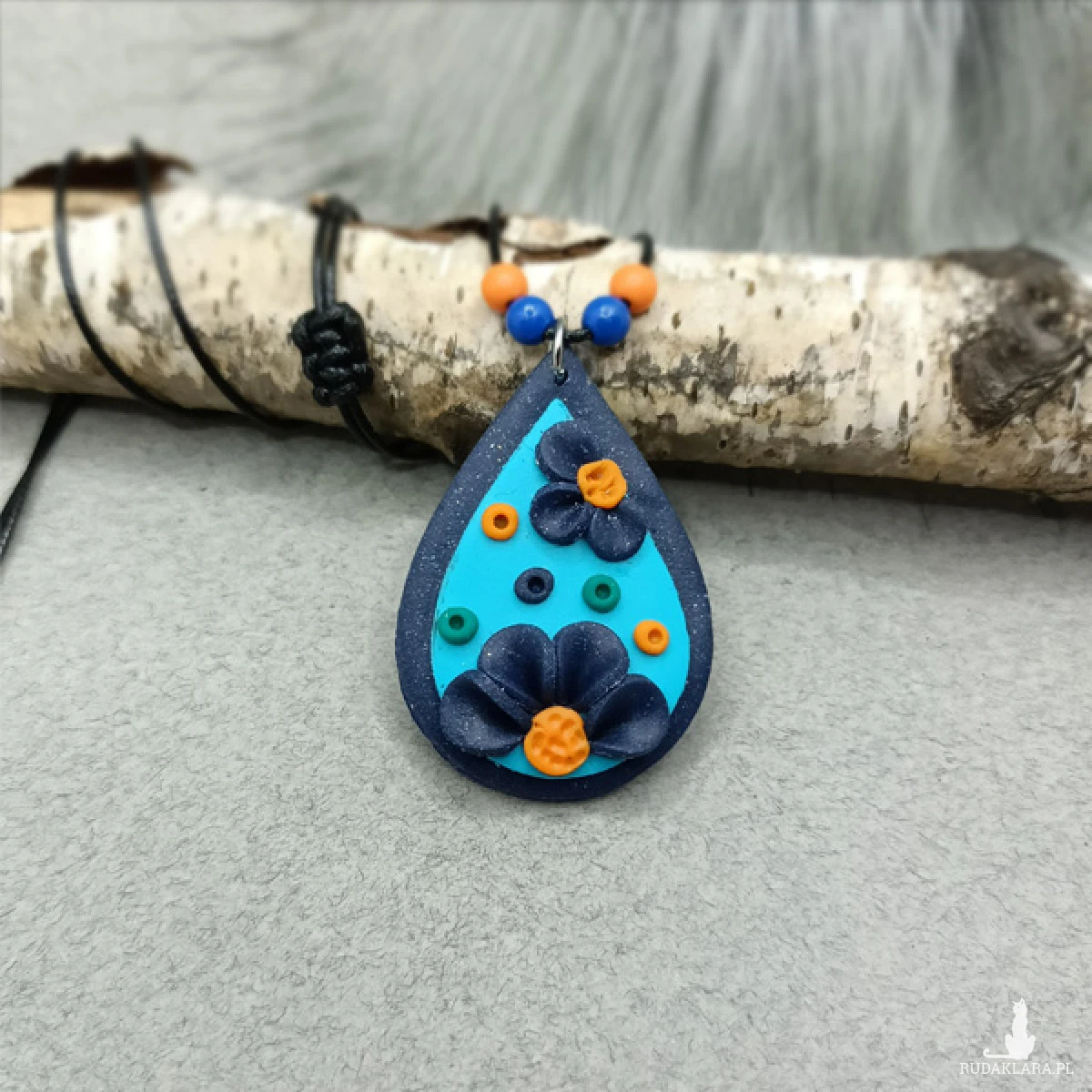 Wisiorek został wykonany w całości ręcznie z wysokiej jakości glinki polimerowej. Jest to materiał bardzo trwały, lekki i odporny na wszelkiego rodzaju czynniki zewnętrzne.