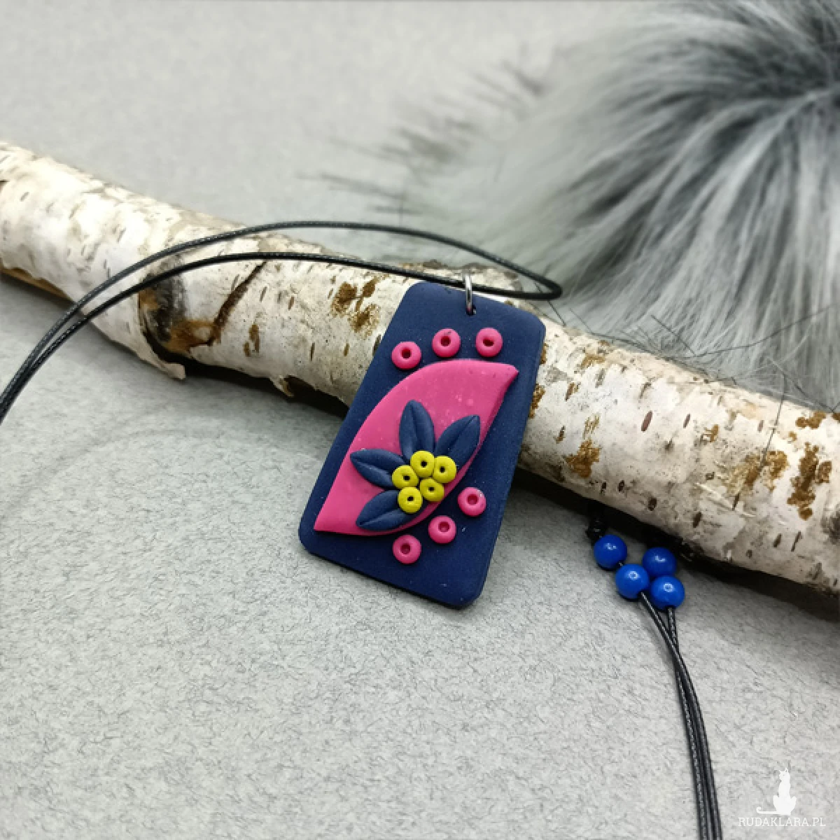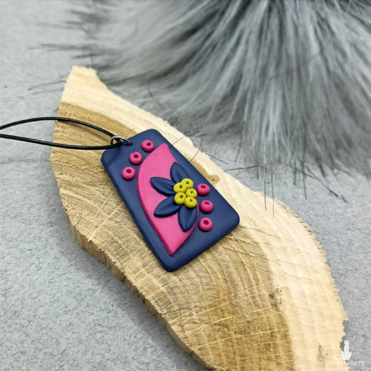 Wisiorek został wykonany w całości ręcznie z wysokiej jakości glinki polimerowej.