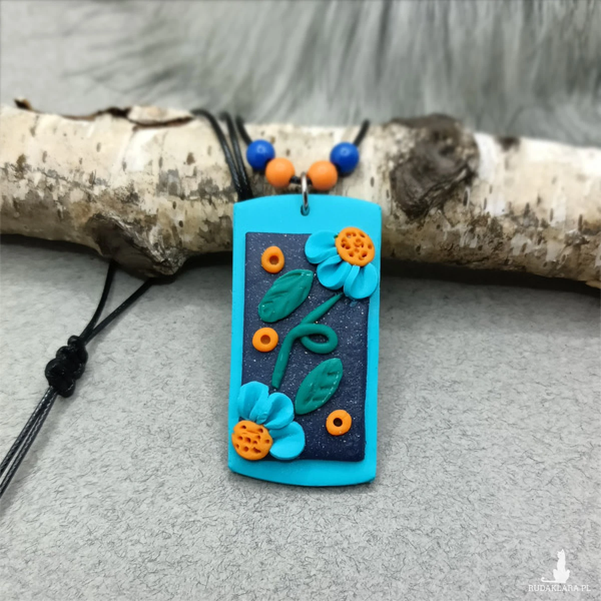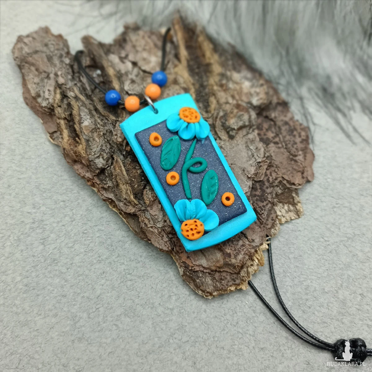 Wisiorek został wykonany w całości ręcznie z wysokiej jakości glinki polimerowej. Jest to materiał bardzo trwały, lekki i odporny na wszelkiego rodzaju czynniki zewnętrzne.