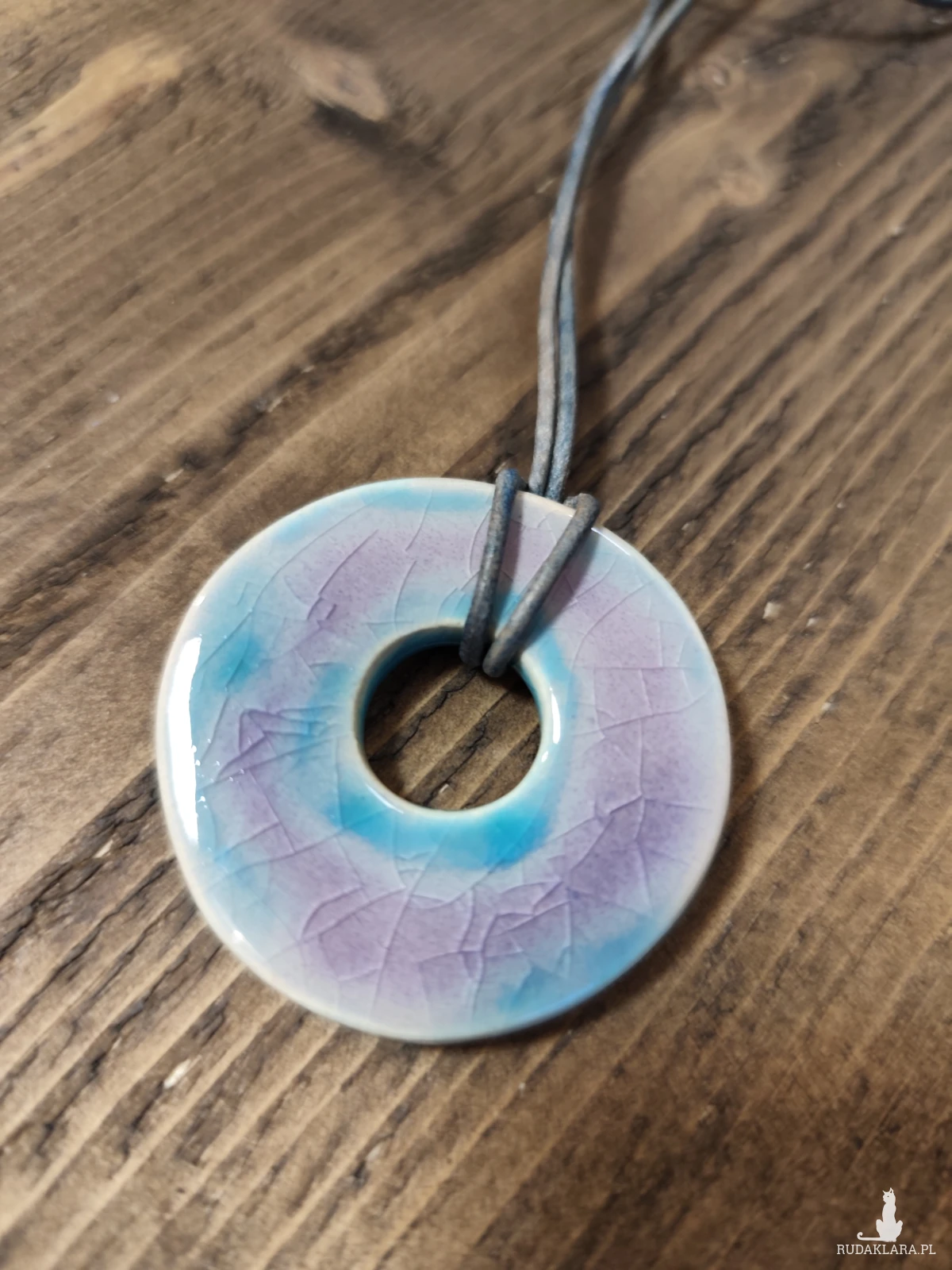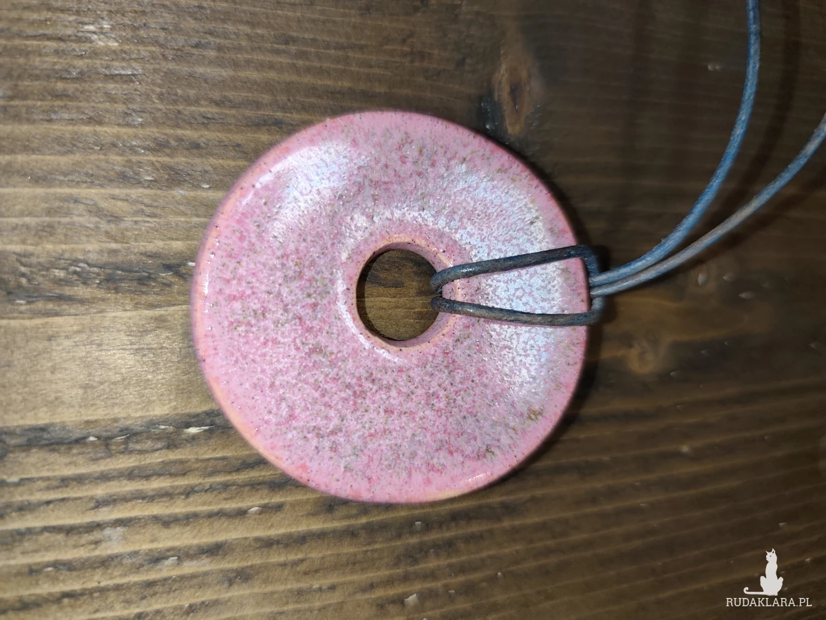 Piękne w kolorze, proste w kształcie wisiory wykonane ręcznie z gliny ceramicznej. Biżuteria dla osób ceniących rzemiosło i przedmioty z duszą. Wyjątkowy dodatek do codziennych stylizacji lub oryginalny prezent. Średnica około 5 cm.