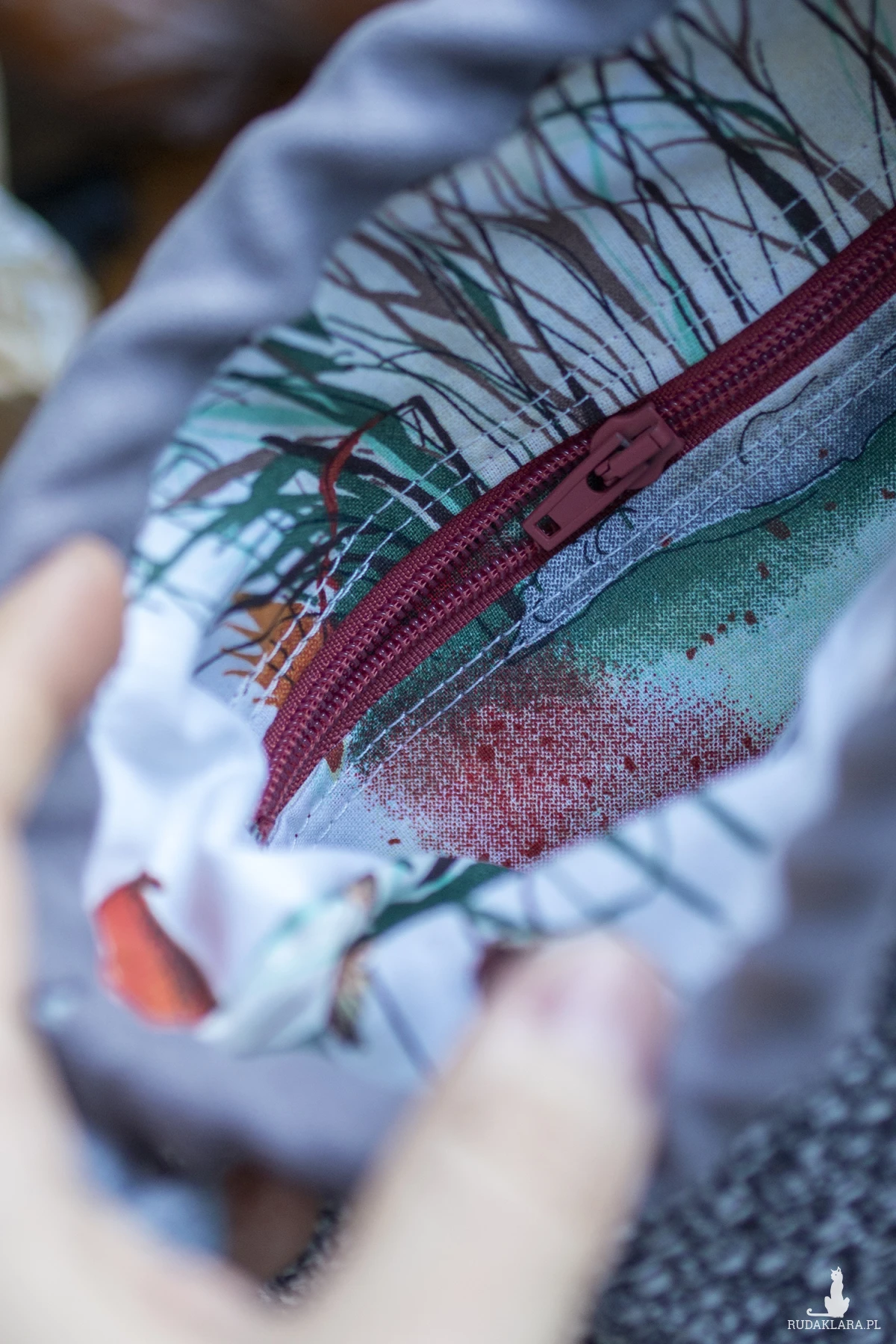 Środek torebki wykończony jest bawełnianą podszewką.