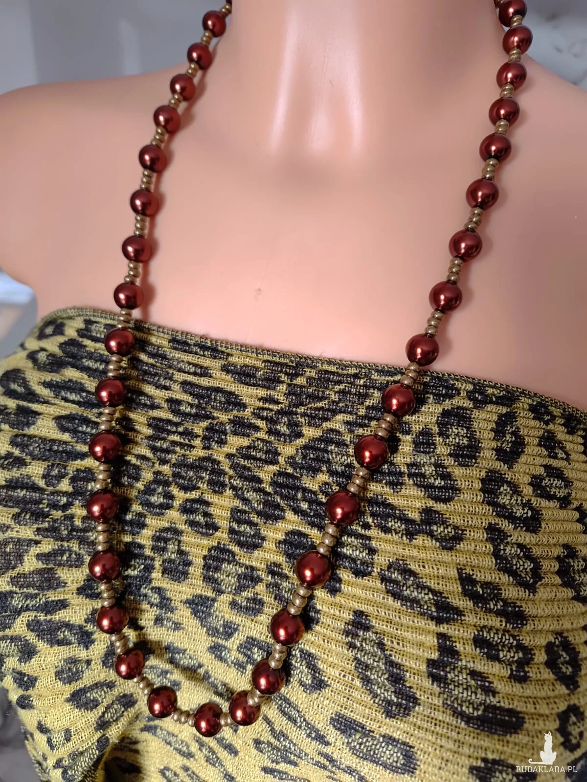Naszyjnik Perły Czekoladowe Szklane Metalizowane