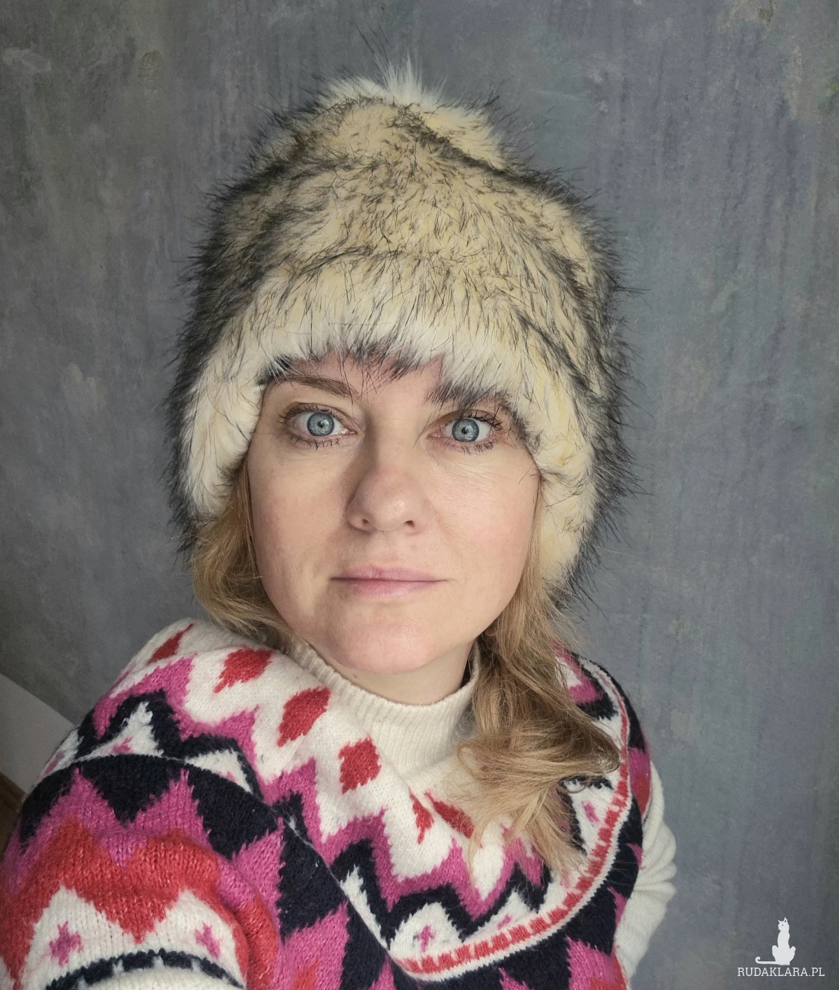 Futrzana czapka długo włos szara ecru zwariowana duża, trzeba lubić takie szaleństwo,   sztuczne futro czapka  na podszewce, rozmiar uniwersalny  bardzo ciepła, box a1