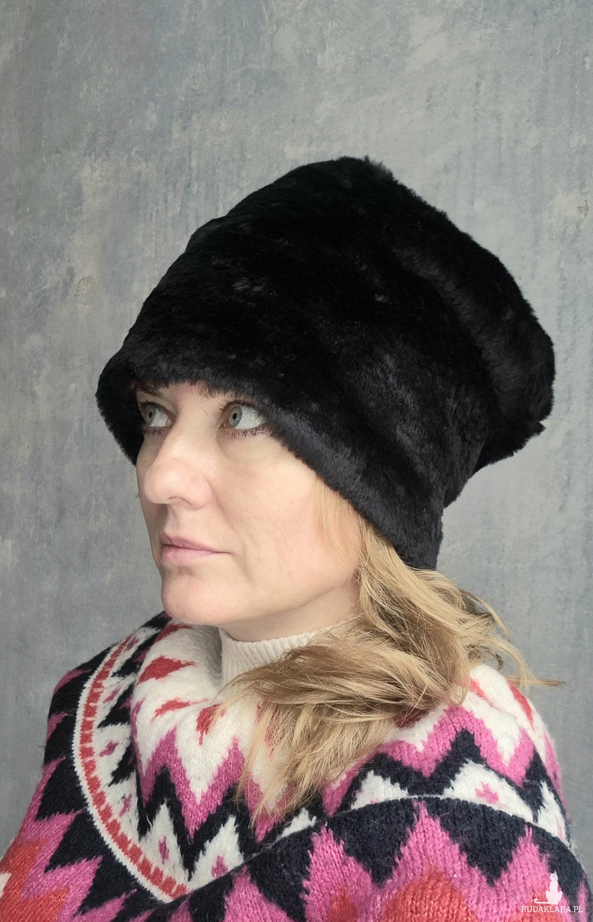 Futrzana czapka czarna krótki włos sztuczne futro czapka  na podszewce, rozmiar uniwersalny  bardzo ciepła, box a1